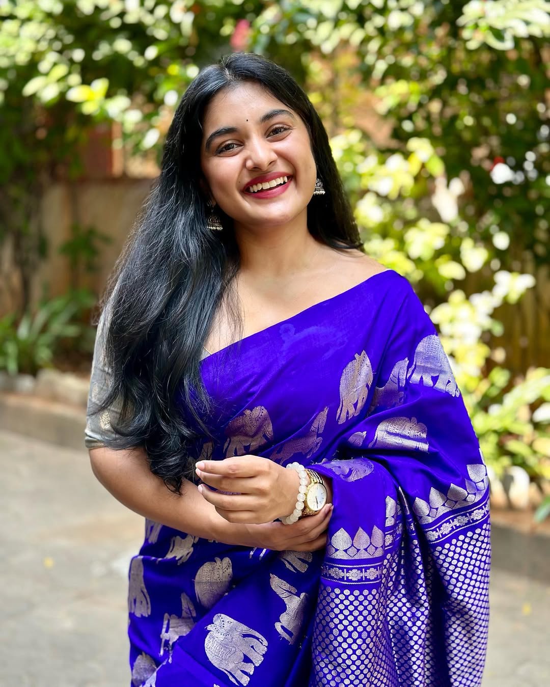 Nivetha Thomas shared a new post on Instagram.She wore a traditional Kerala saree with golden borders.Her smile in the picture reflected warmth and joy.She added a cheerful caption to her post.