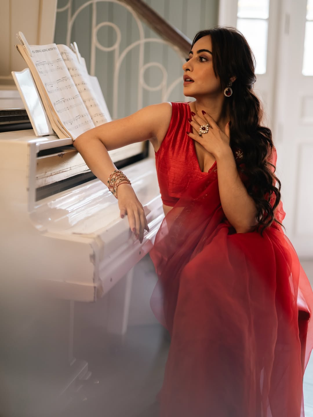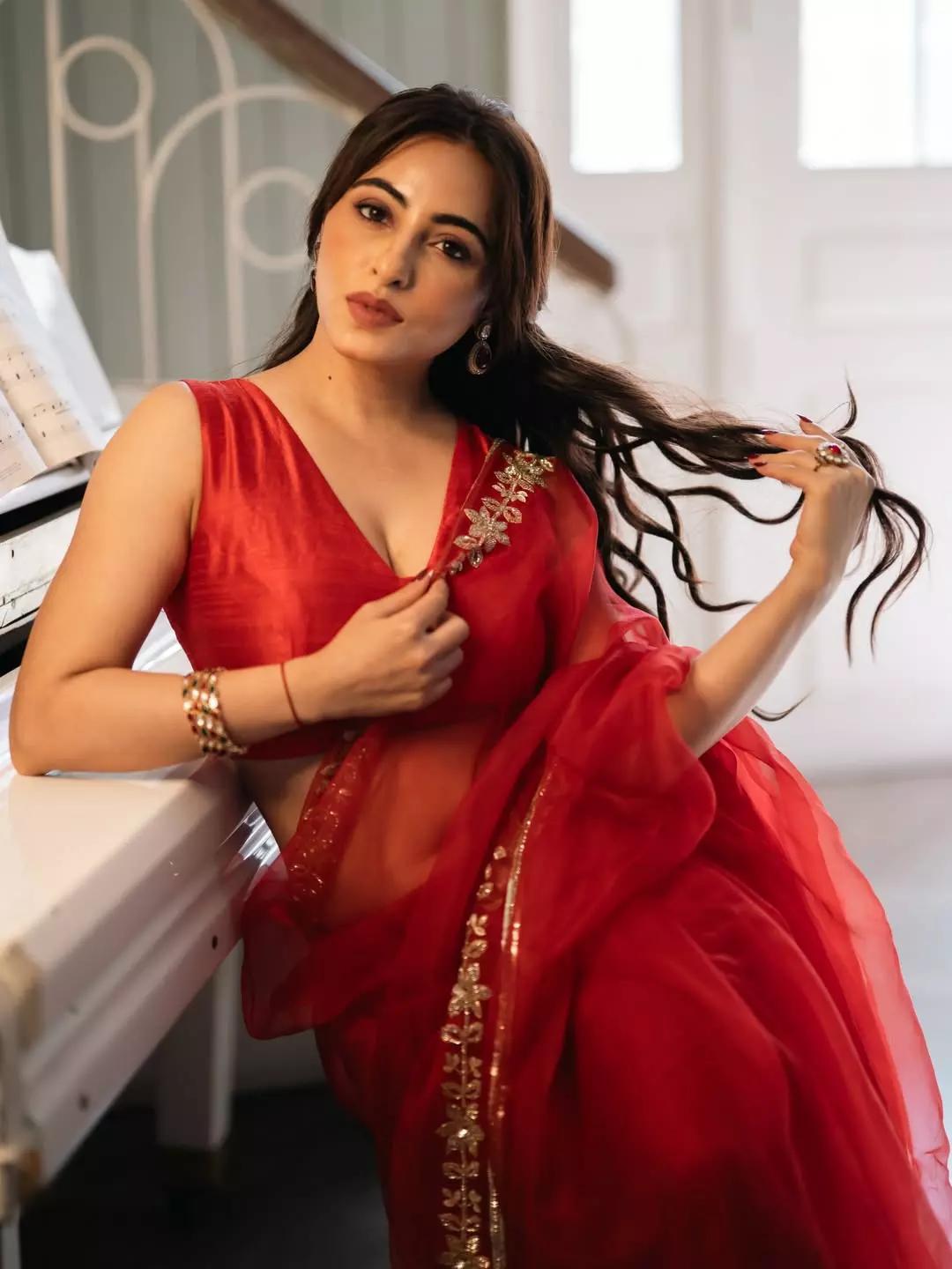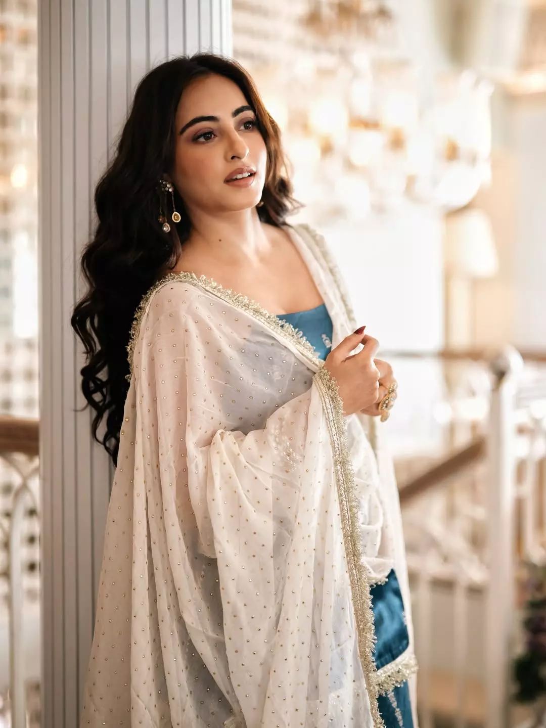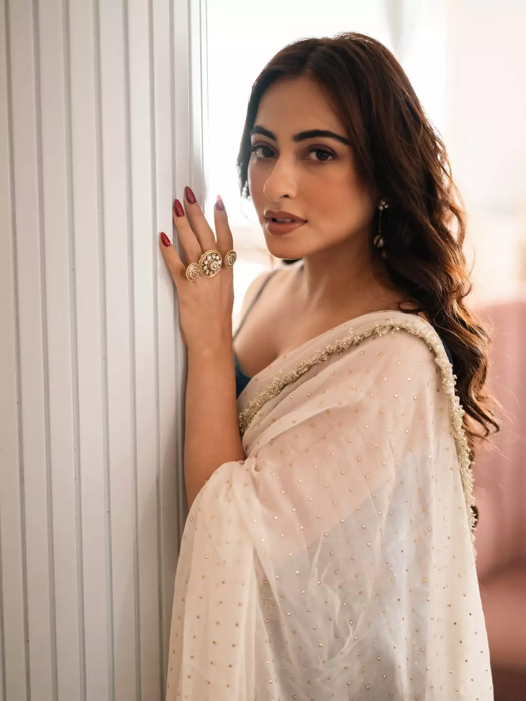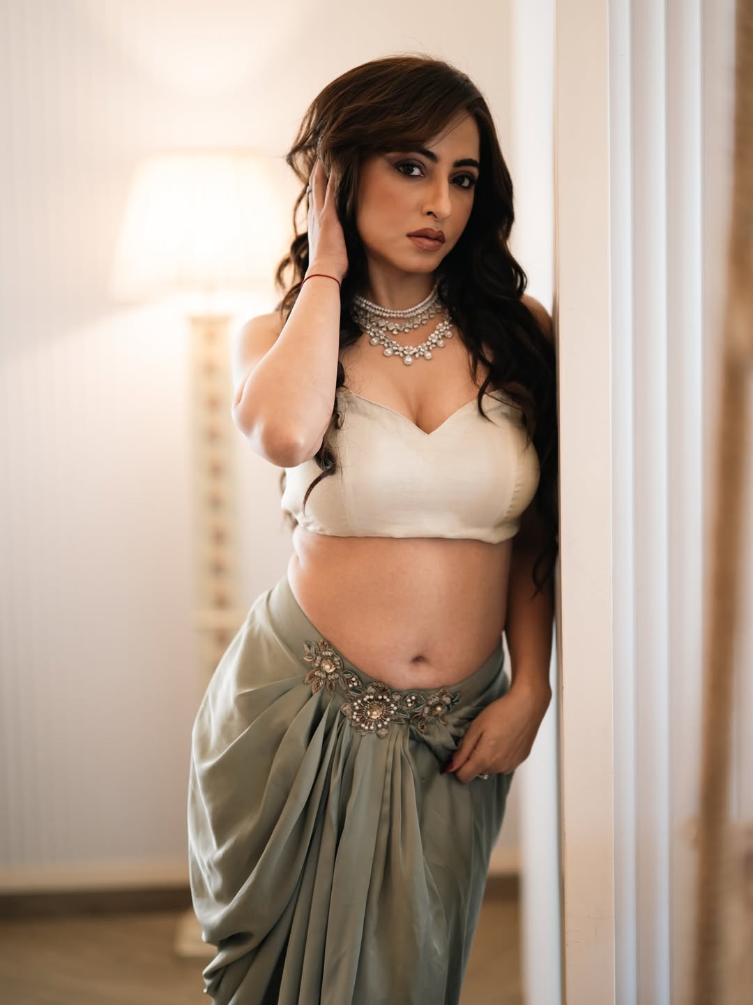 Striking a pose with her hand running through her hair, Niyatii radiates confidence and allure, effortlessly commanding attention.