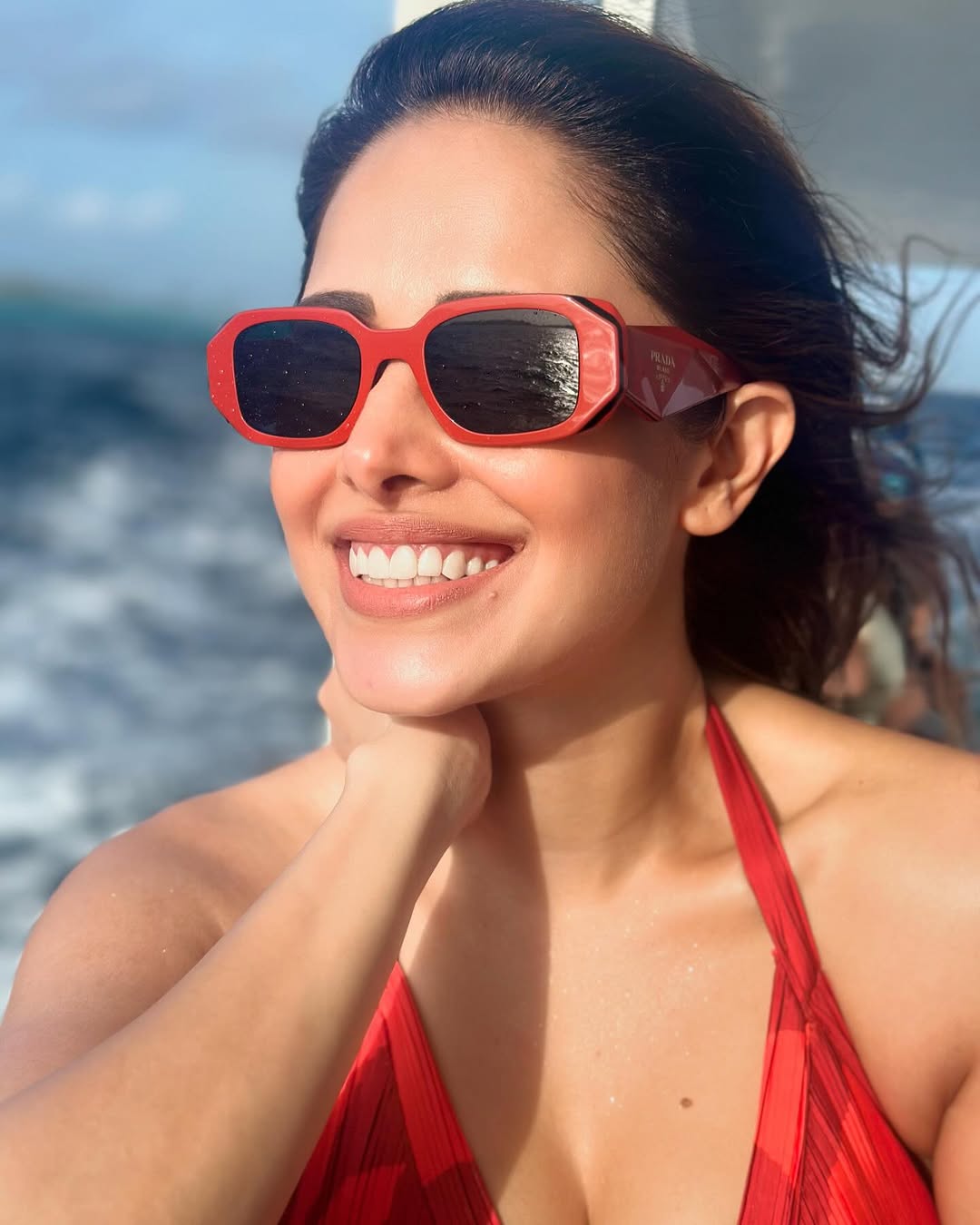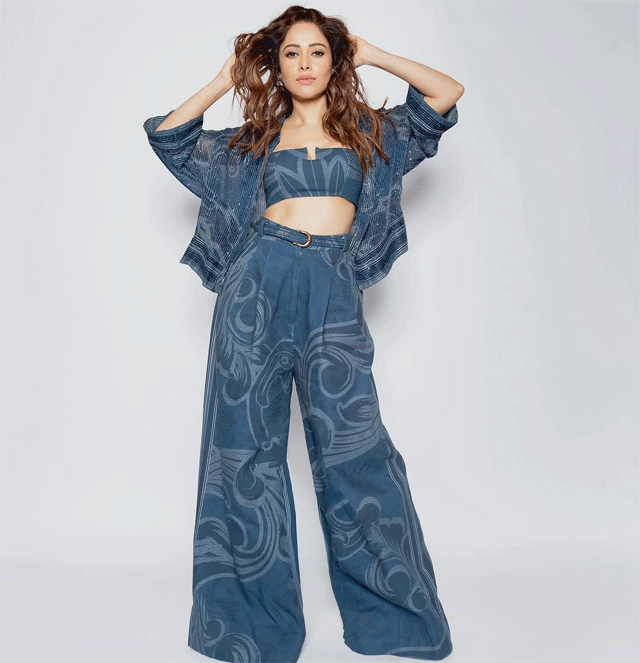 In her latest Instagram post, Nushrratt Bharuccha captivates in a chic denim-themed ensemble styled by @nidhijeswani and assisted by @hritika.naik.