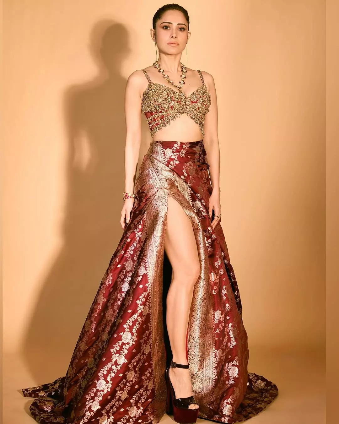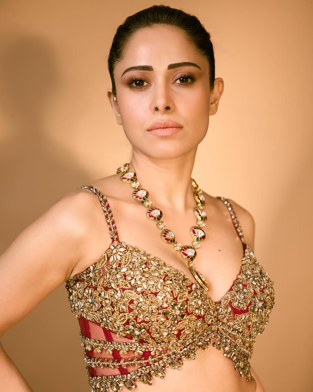 In her latest Instagram post, Nushrratt Bharuccha captivates in a chic denim-themed ensemble styled by @nidhijeswani and assisted by @hritika.naik. The outfit, designed by @nikitamhaisalkar, features a stylish crop top and high-waisted pants with a bold print, giving a modern edge to denim fashion. Her makeup, done by @vardannayak, and hair styled by @cheemabaljit2, complement her confident, glam look. The photo, clicked by @miteshsphotography, captures Nushrratt’s poise perfectly. She captioned the post with a witty line: “Jean-ius at Work!”