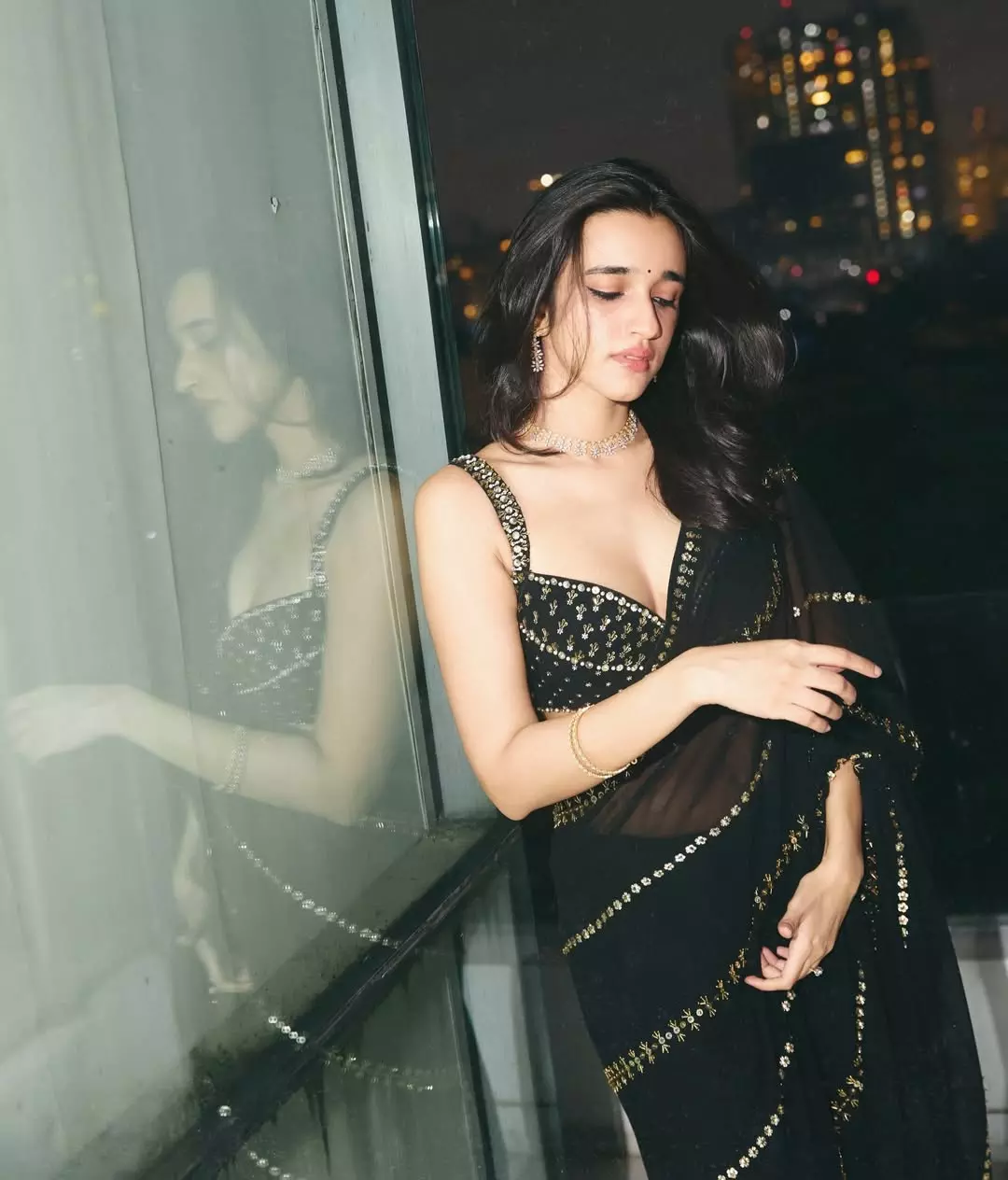 Nuveksha’s ability to carry such a classic look with modern flair underscores her versatility as a style icon. Whether it’s a candid shot or a high-fashion editorial, she brings life and personality to every image. This black saree shoot is more than just a fashion statement—it’s a celebration of grace, elegance, and the effortless glamour that makes Nuveksha a standout star in both fashion and entertainment.