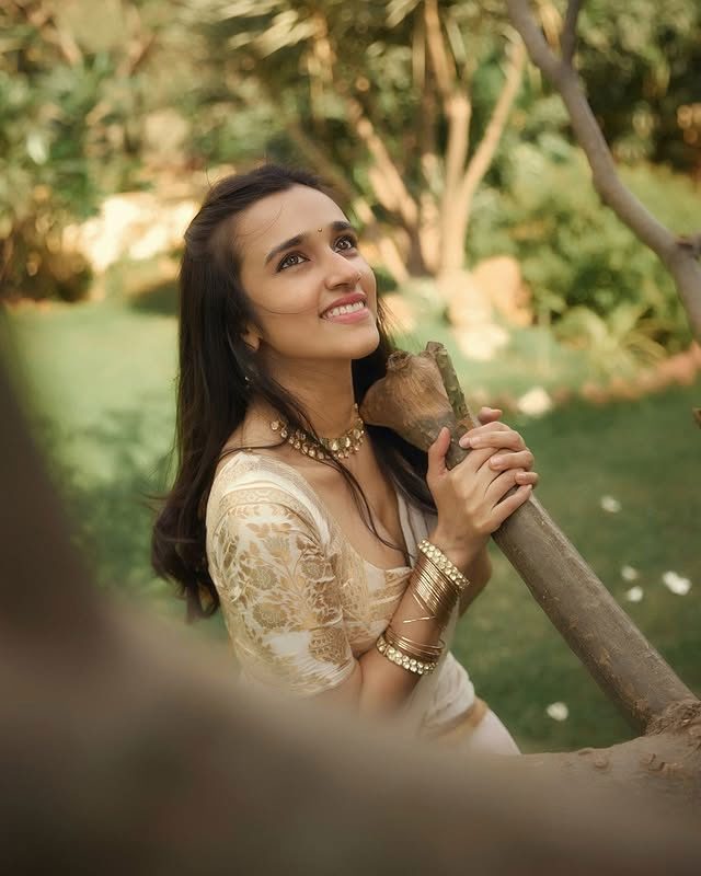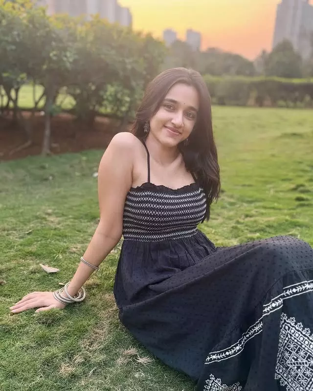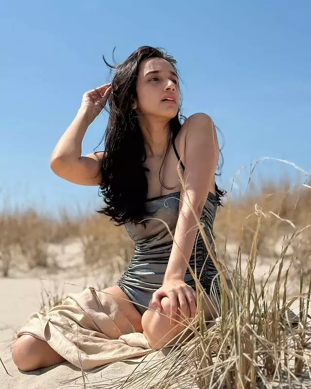 In a recent post, Nuveksha shared a picture from a scenic location. She wore a metallic dress. The background had tall grass and a clear blue sky. The look was effortless yet classy and she proves that minimal fashion can be powerful.