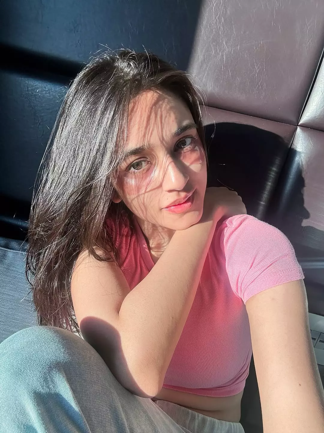 Actress Nuveksha recently shared a selfie on Instagram and it has quickly become the talk of her fans. In the picture, she is seen enjoying the soft morning sunlight which gently falls on her face and makes her eyes shine. She is wearing a simple pink top and her smile gave a warm and glowing vibe to the photo.