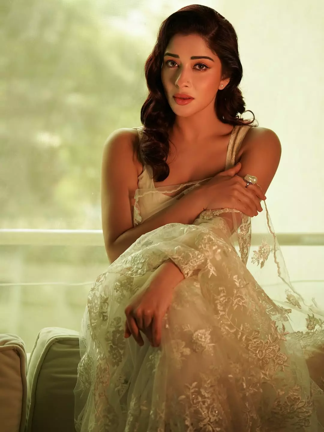 Nyra Banerjee shared a graceful photo on Instagram. She wore a soft white couture dress with intricate lace work. She has given still while sitting on a couch with her eyes closed and light in the background created a dreamy atmosphere.