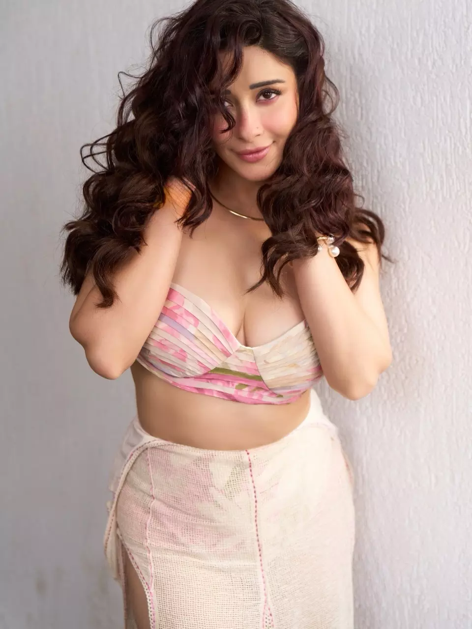 By: Tupaki Desk | 19 April 2026 9:25 AM ISTNyra Banerjee stuns in this radiant photoshoot, blooming like a sunflower in a vibrant strapless top with pink and pastel stripes paired with a textured beige skirt. Her voluminous dark curls cascade playfully as she flashes a captivating smile, one hand gracefully touching her hair. The caption perfectly captures the vibe: “Blooming your dark days with my smile and some sunflower. Did that make you smile????” Edited by @safyanali_retouching and styled by @devrishi_official, the image radiates positivity and charm.