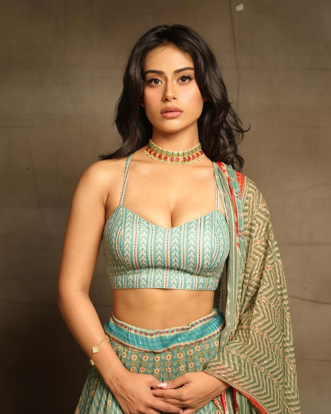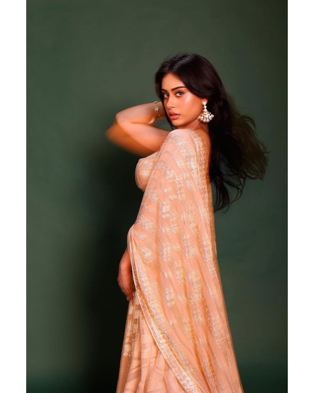 Nysa’s hair was styled by Kunj Sharma, keeping it neat and polished to match the outfit’s modern tone. The draping was handled by Supriya Mohite, ensuring the lehenga and dupatta fall perfectly. The look was captured by photographer Dinesh Ahuja.