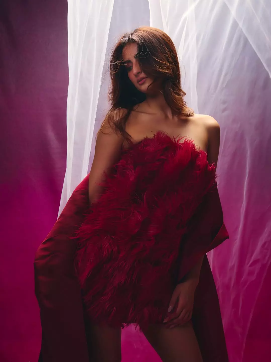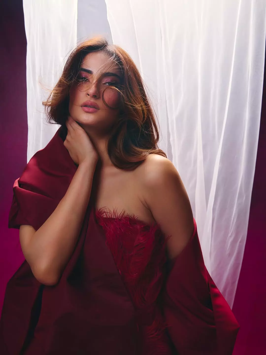 Each frame captures a different facet of her persona—poised, introspective, and effortlessly glamorous. The interplay of soft lighting and sheer backdrops enhances the mood, giving the visuals a dreamy, almost cinematic quality. Palak’s subtle expressions and graceful posture reflect a growing maturity in her style, marking her as a rising fashion icon to watch.