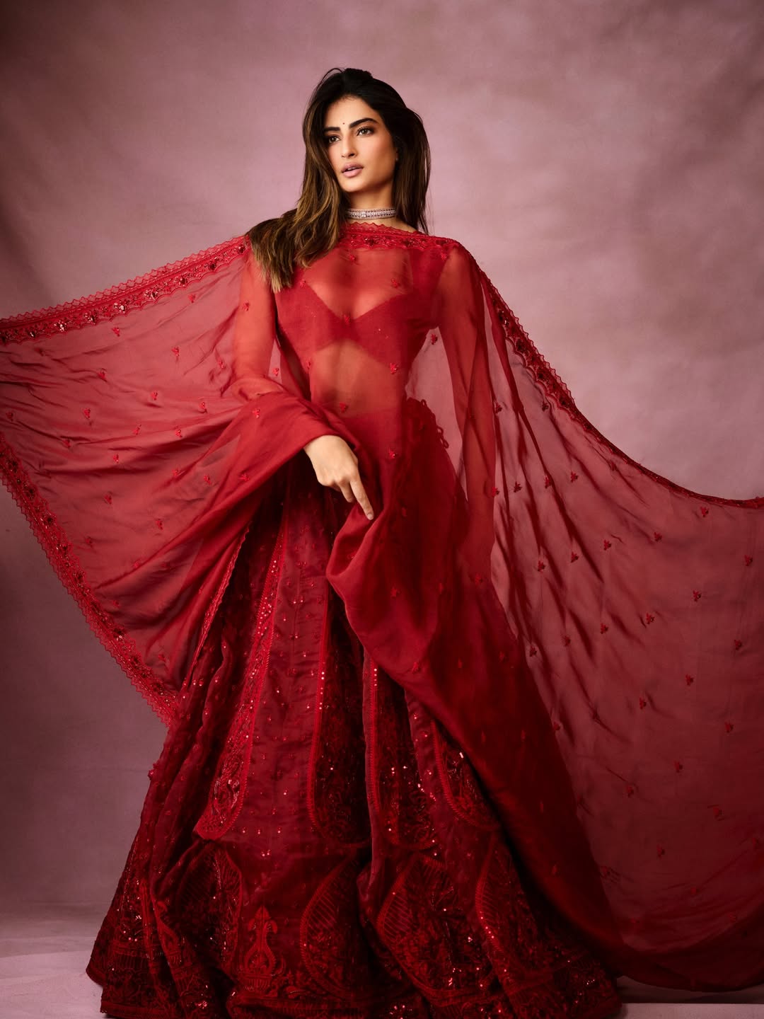 Palak Tiwari continues to captivate audiences not just with her on-screen presence but also with her evolving fashion sensibility. In this stunning gallery, she embraces a bold aesthetic, draped in a rich crimson ensemble that exudes confidence and sophistication 🍒. The textured outfit, paired with soft flowing hair and minimal accessories, highlights her natural elegance while allowing the dramatic color palette to take center stage.