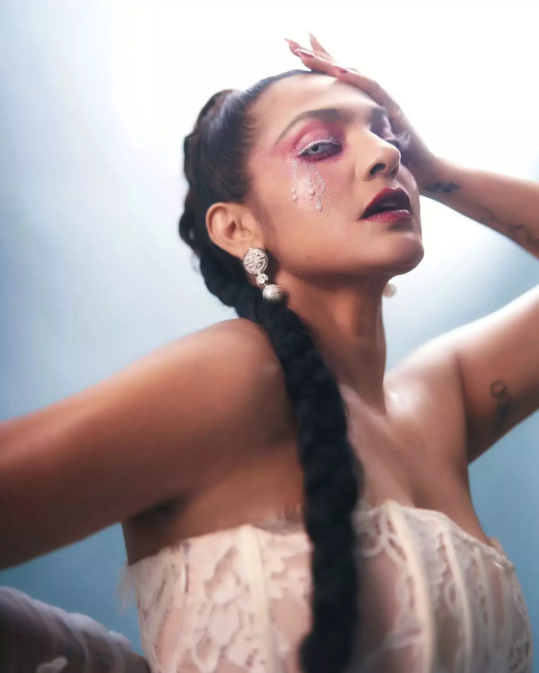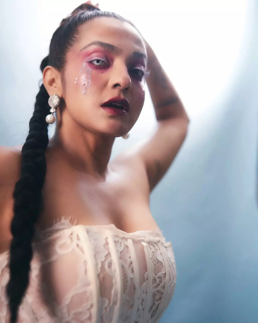 Her look, completed with brilliant makeup and hair by Makeupby Zainab and sparkling jewels from Aquamarine Jewellery. The post was a part of her collaboration with The Dirty Magazine for their special Halloween edition, which she captioned, “And there.. she rises!”.