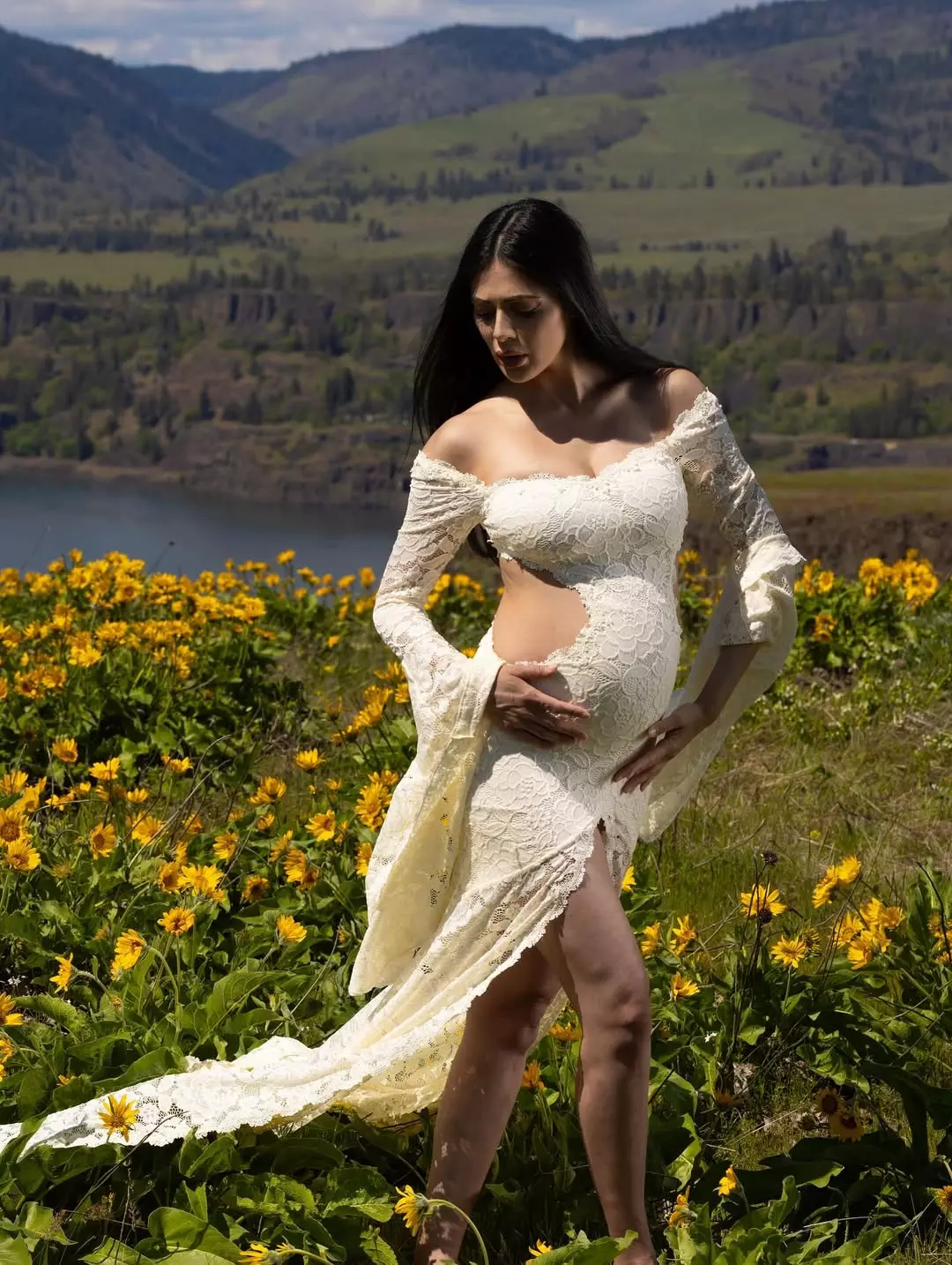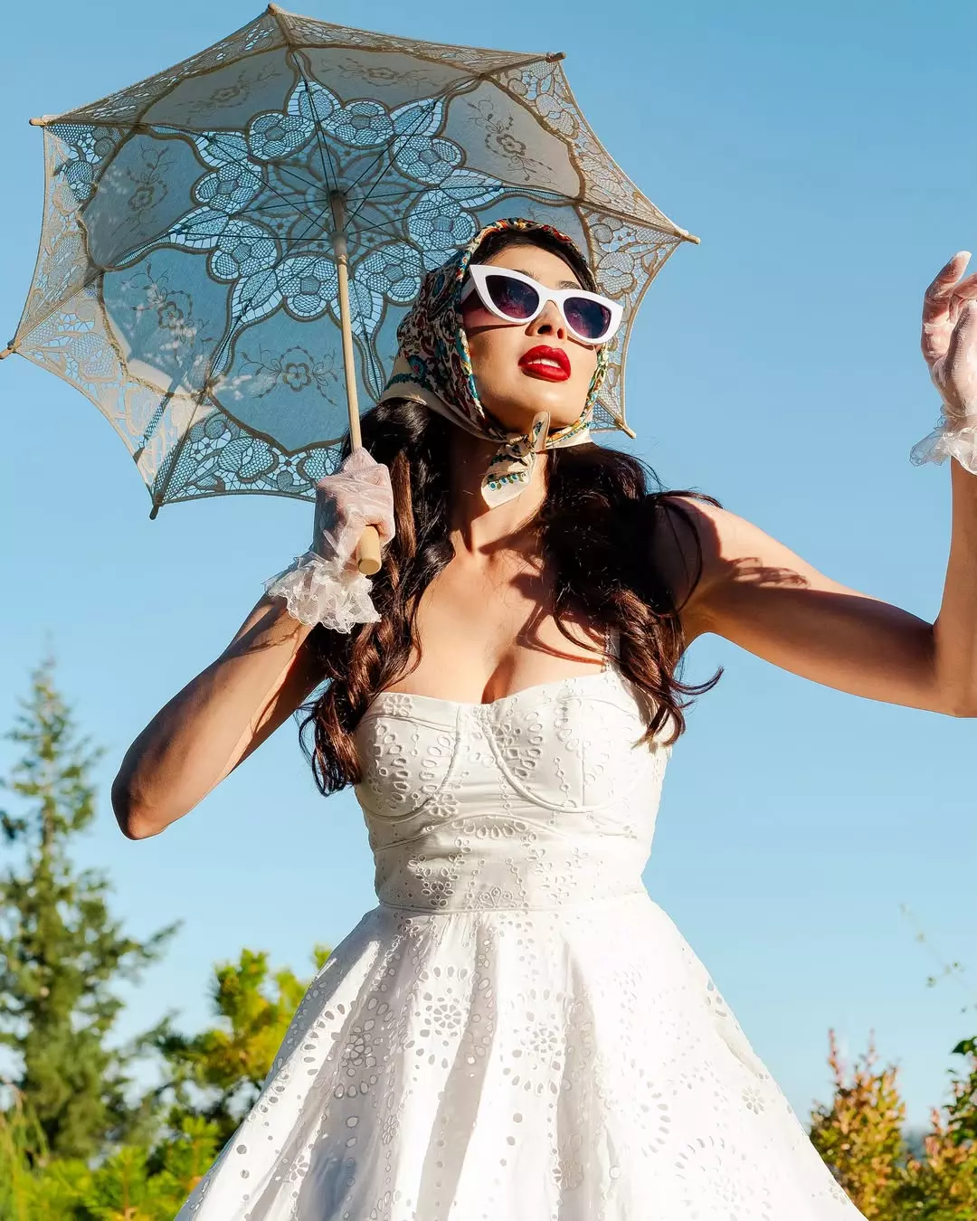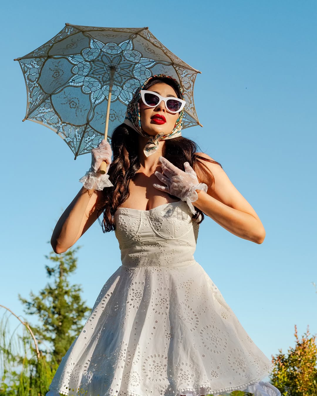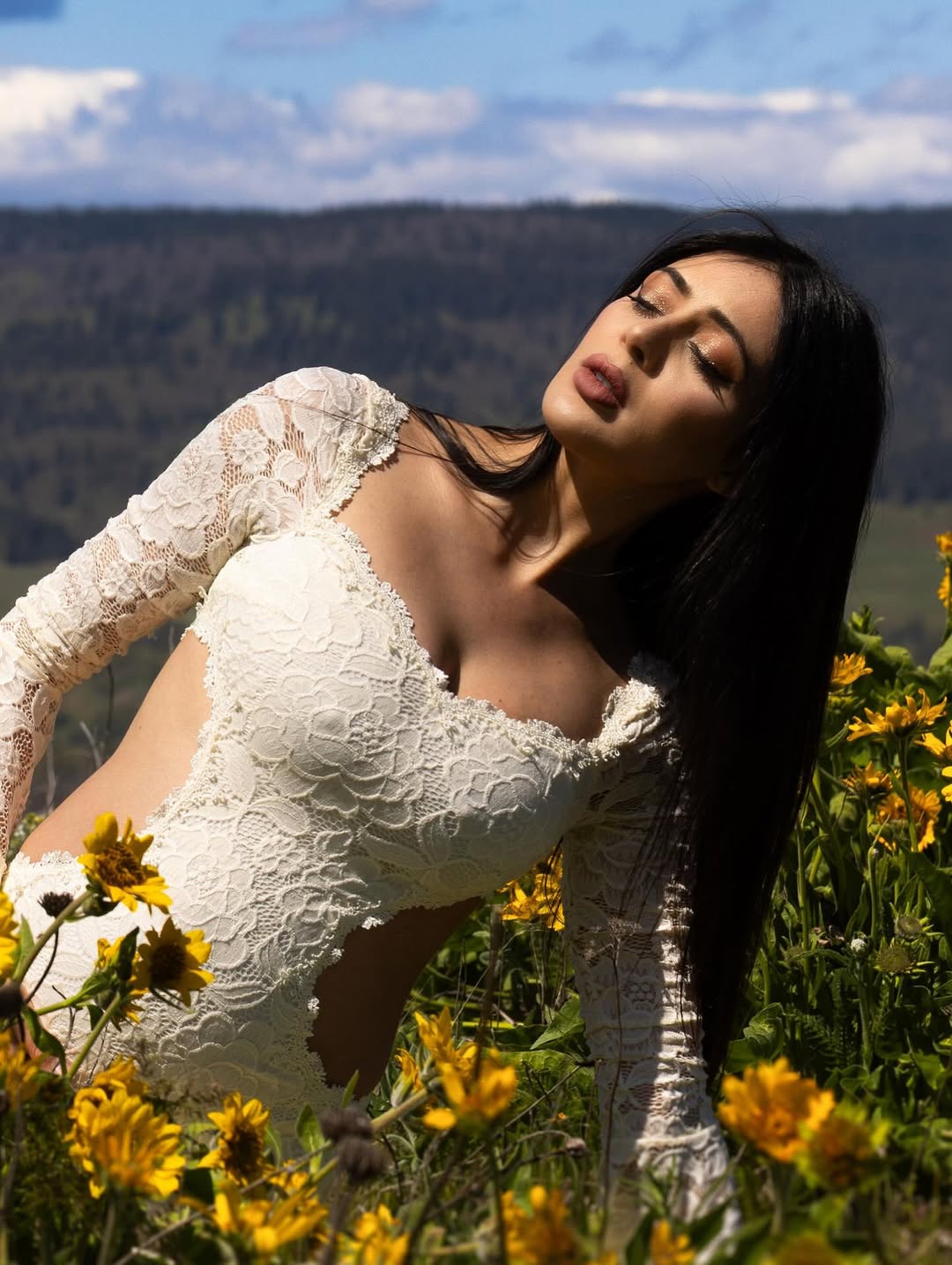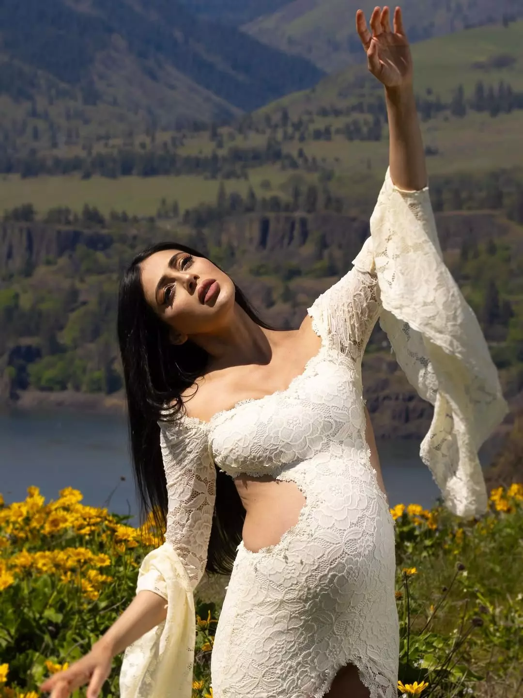 Jalsa actress Parvati Melton shared a fresh post on Instagram. She stood in a field of bright yellow flowers. She wore a soft white lace dress that flowed with the breeze. The background had hills and a lake.