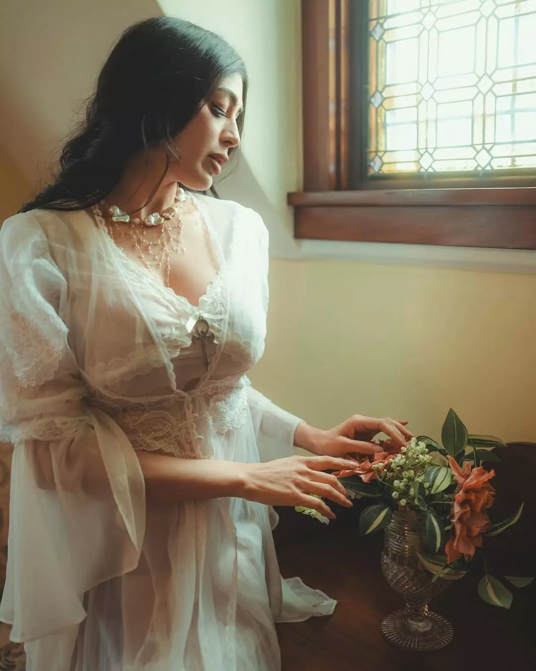 The caption reveals that this shoot was titled “A Mother’s Angst.” The photographer explained the story behind the project. The original shoot was cancelled when the mother went into labor. He struggled to find someone else. He then reached out to Parvati Melton. She agreed to do the shoot. They worked together and created the concept in a week. The idea was to create images that looked like paintings.
