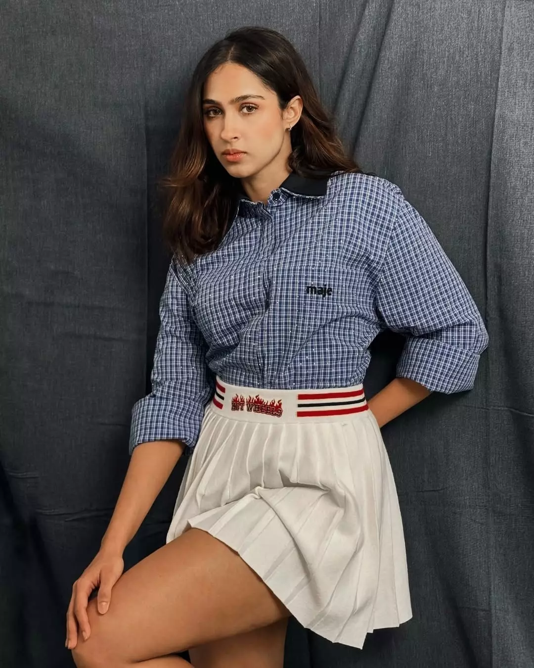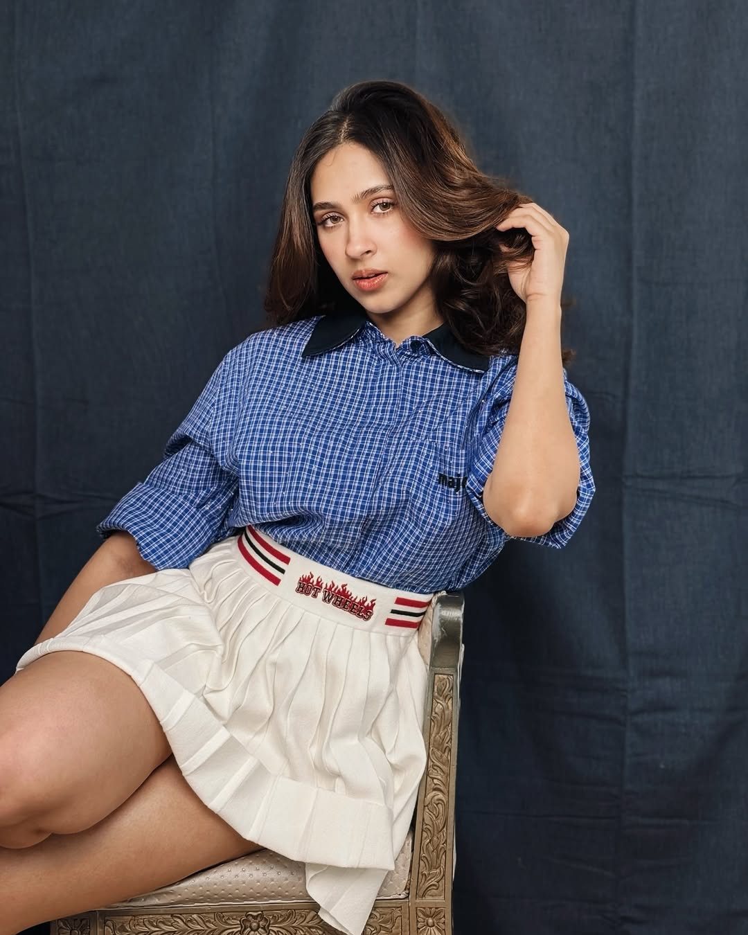 By: Tupaki Desk | 14 July 2025 10:32 PM ISTPashmina Roshan shared a photo on Instagram in which she is seen sitting on a chair wearing a blue checkered shirt and a white skirt. The skirt has “Hot Wheels” written on the waistband making her dress fun and unique.