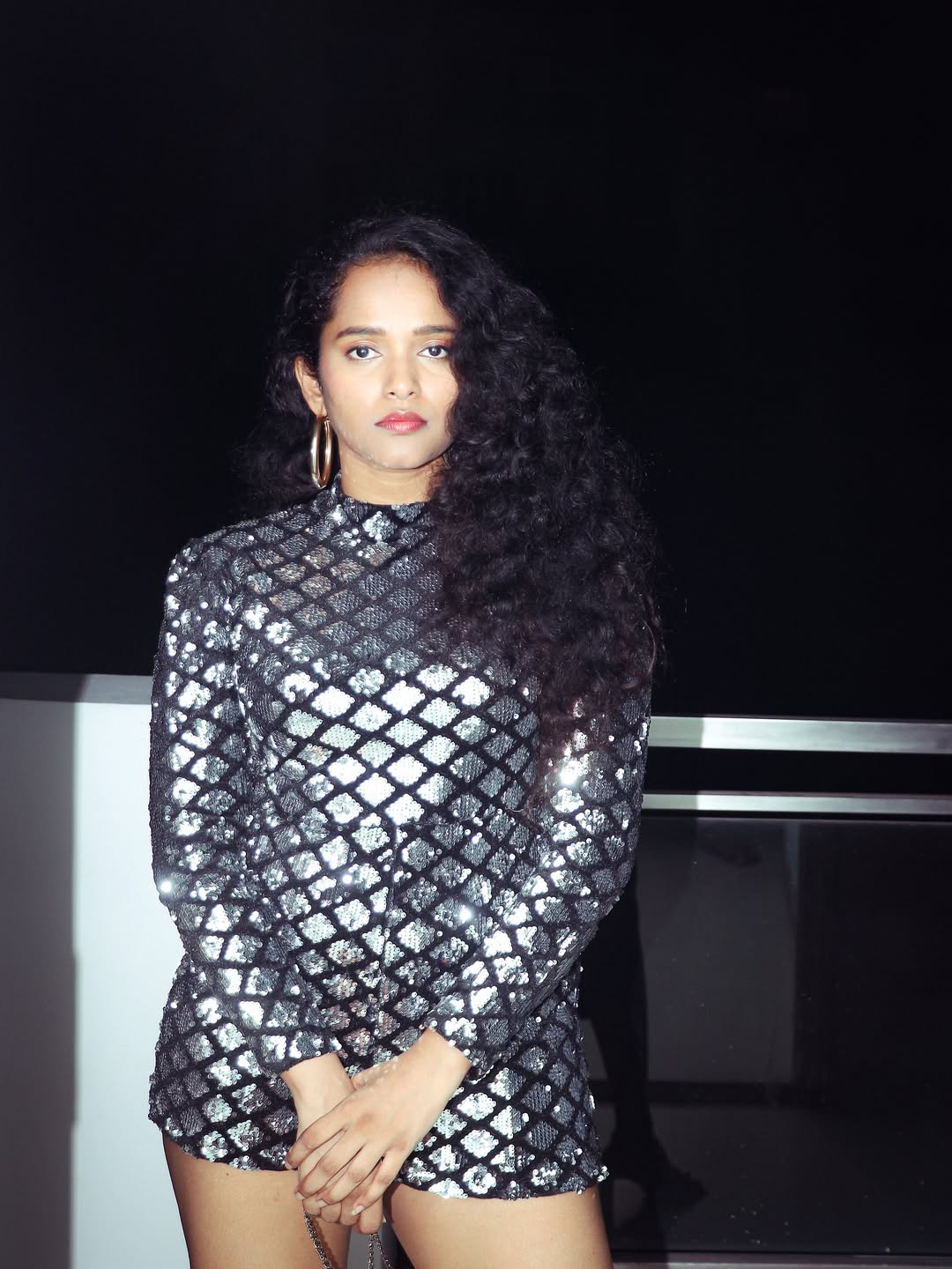 Pavani Karanam, the rising Telugu cinema sensation known for her captivating roles in hits like Pushpa: The Rise and Pareshan, stuns in this mesmerizing nighttime portrait.