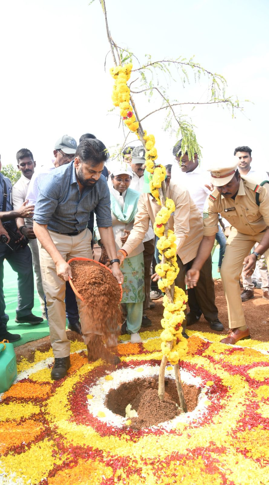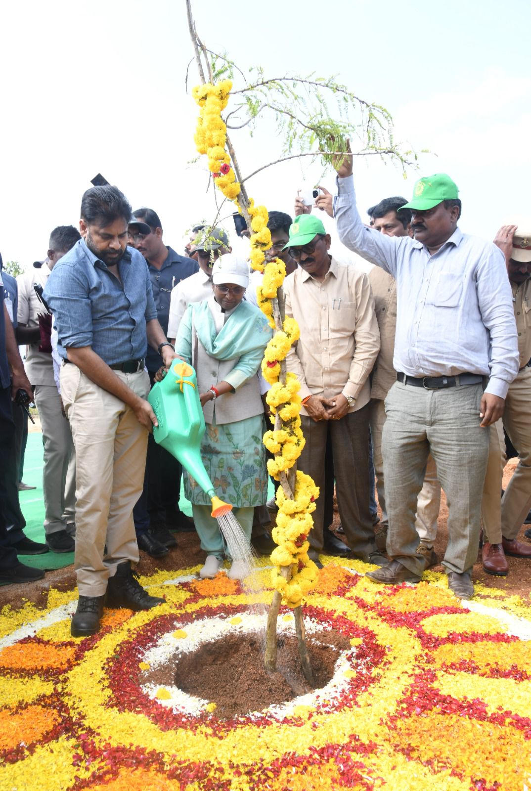 Shri Pawan Kalyan inaugurated the newly developed Musalamadugu Elephant Camp and laid the foundation for an advanced solar fencing system designed to protect farmlands from elephant attacks. He also initiated a Miyawaki-style forest plantation, planting a gooseberry sapling to promote dense forest growth in limited areas.