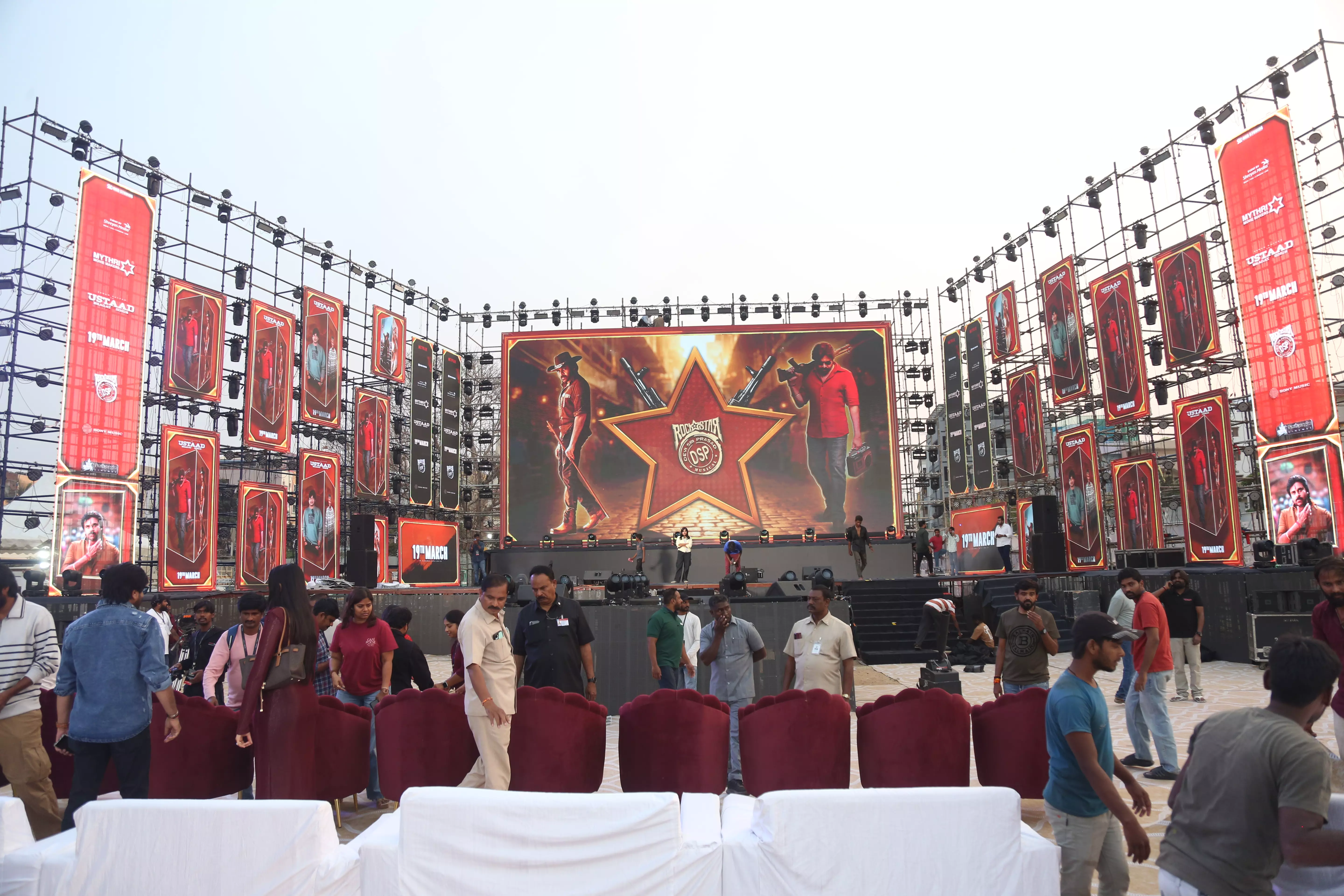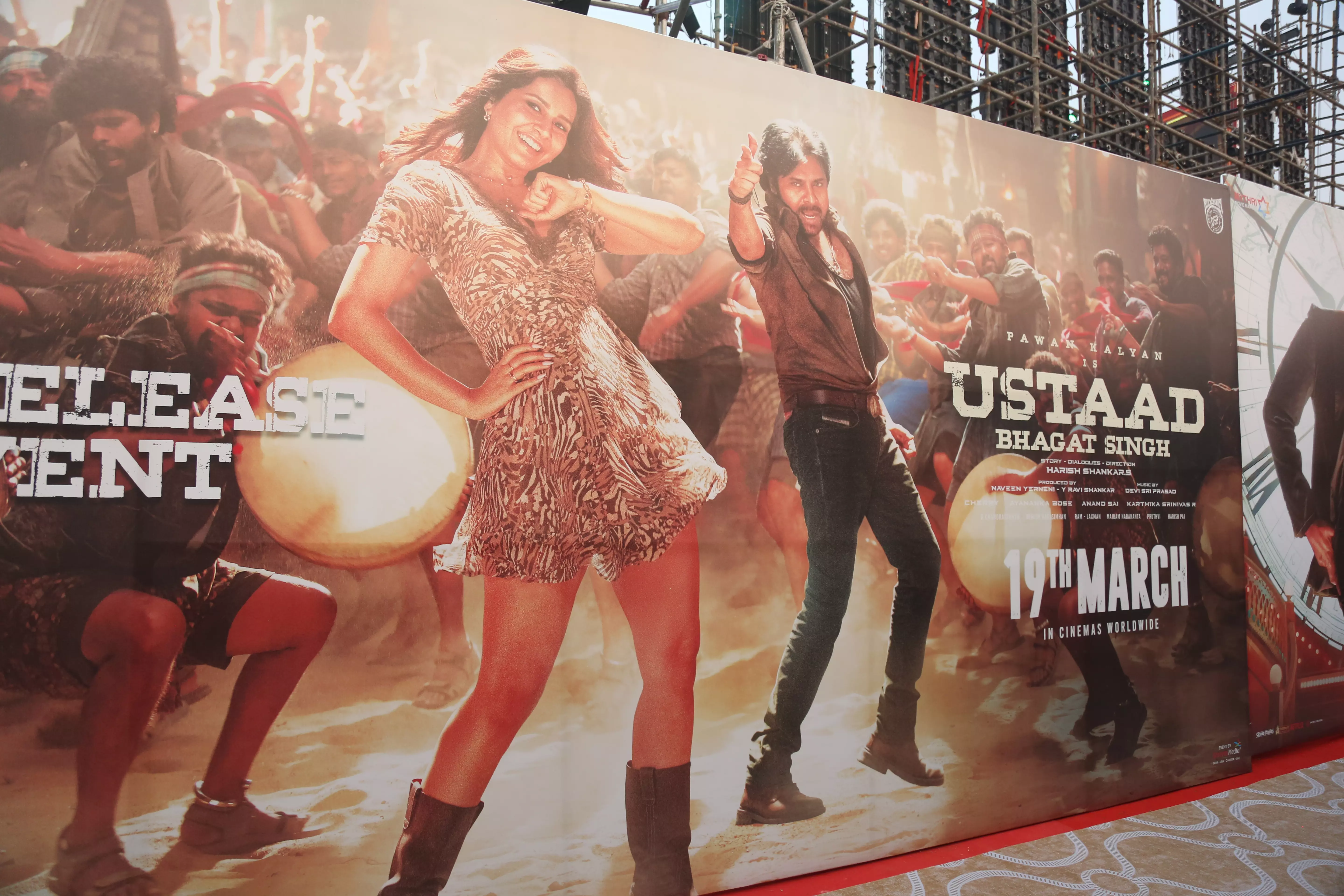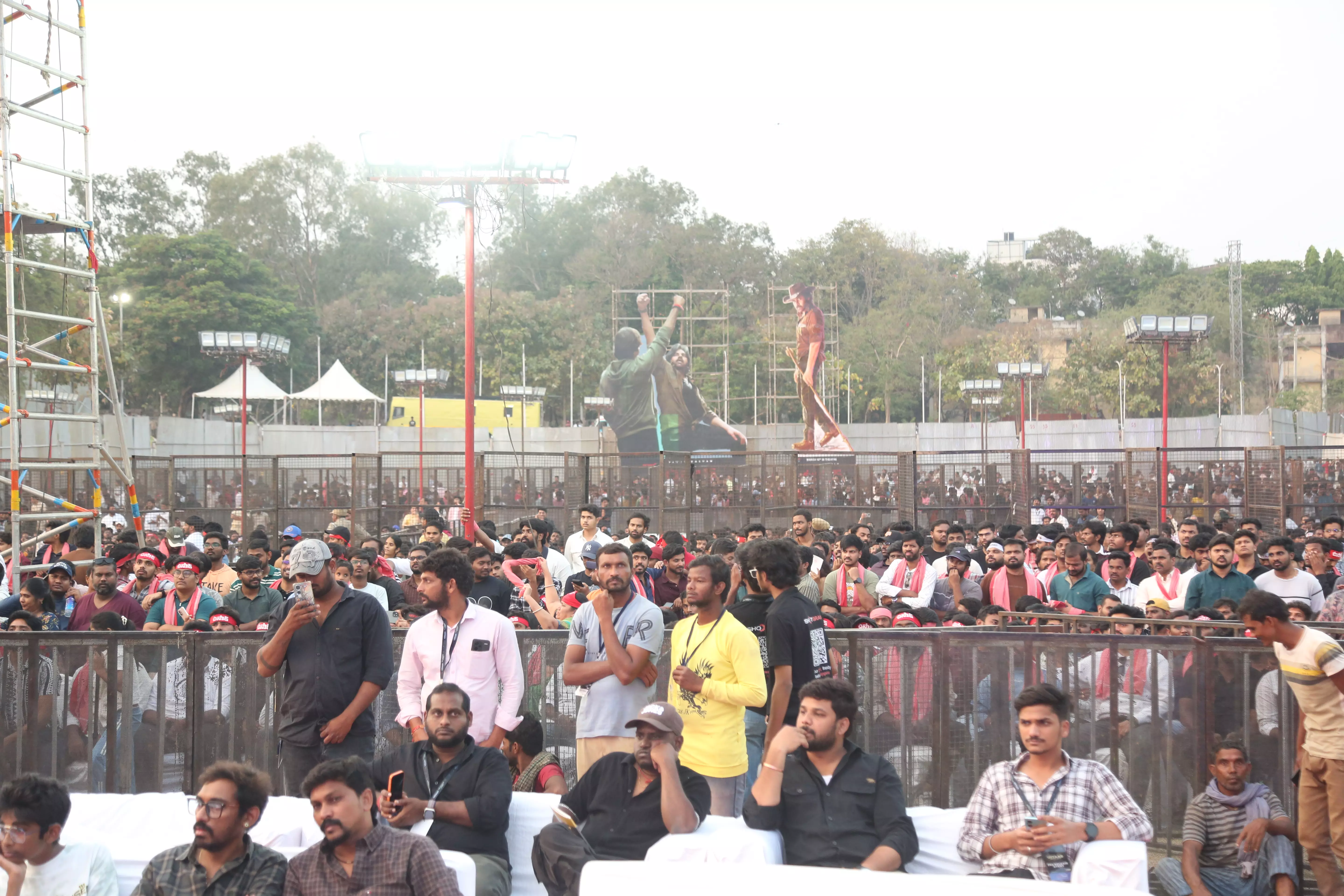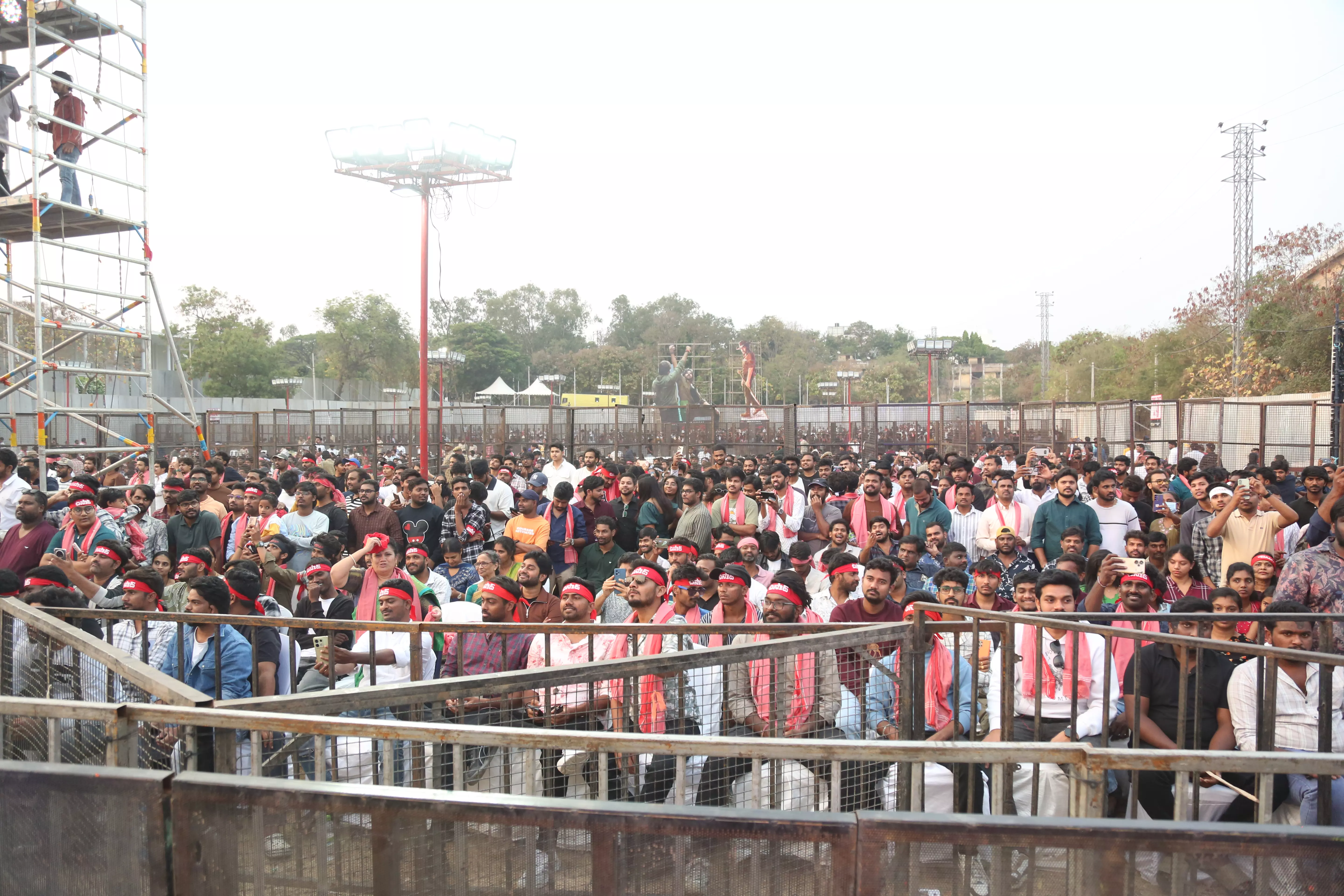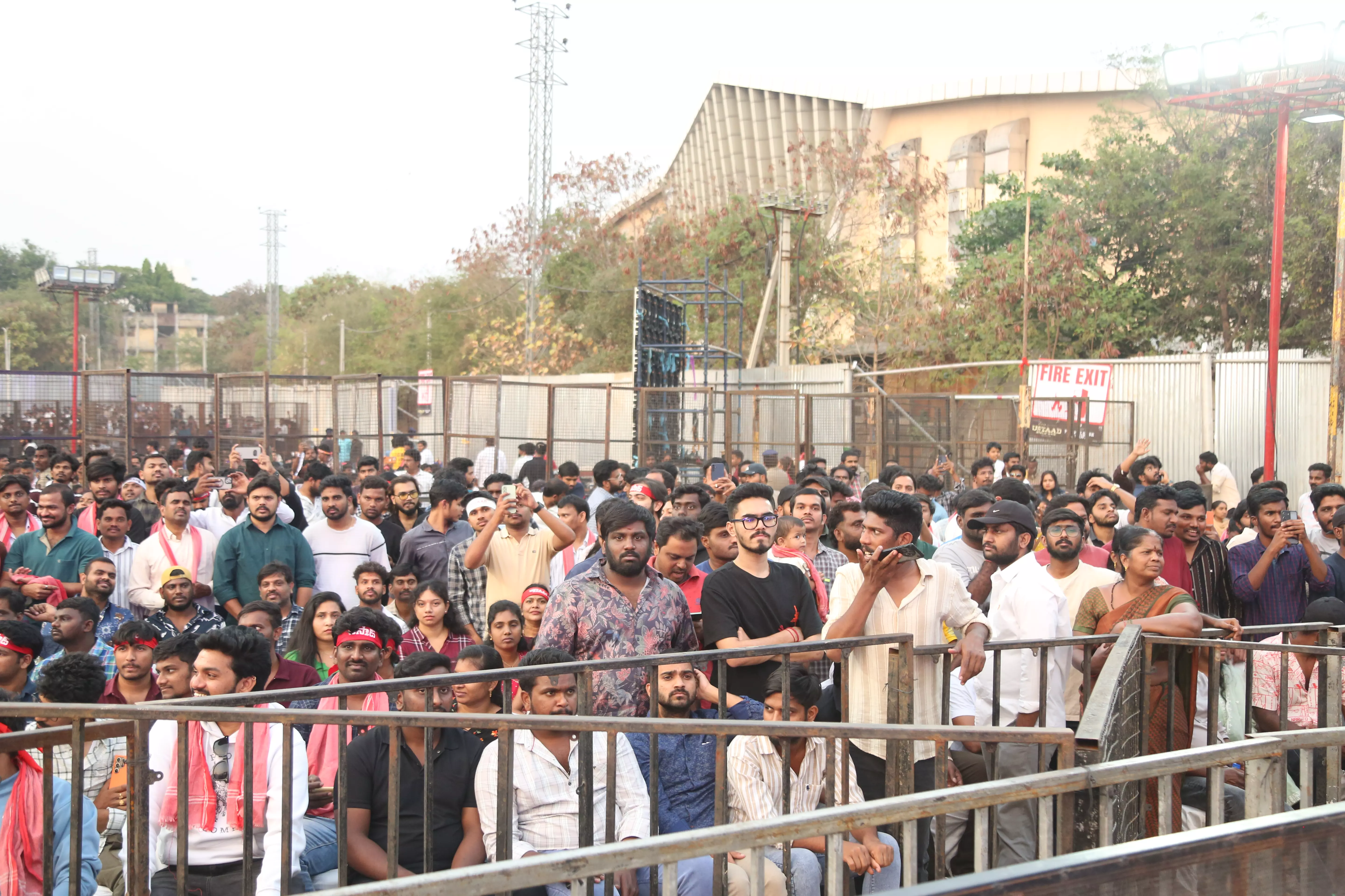 Fans of Ustaad Bhagat Singh gathered in huge numbers at the pre-release event, creating an electrifying atmosphere filled with excitement and anticipation. Enthusiastic supporters arrived early, waving banners and cheering for Pawan Kalyan, showing their unwavering love and support for the film.