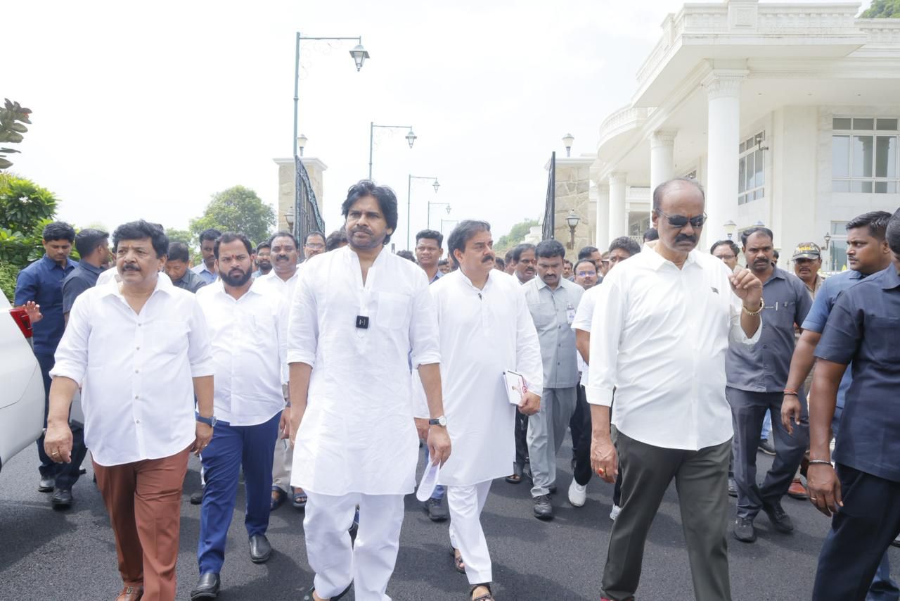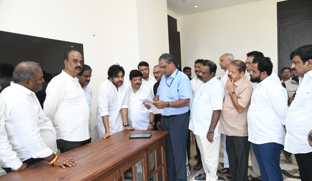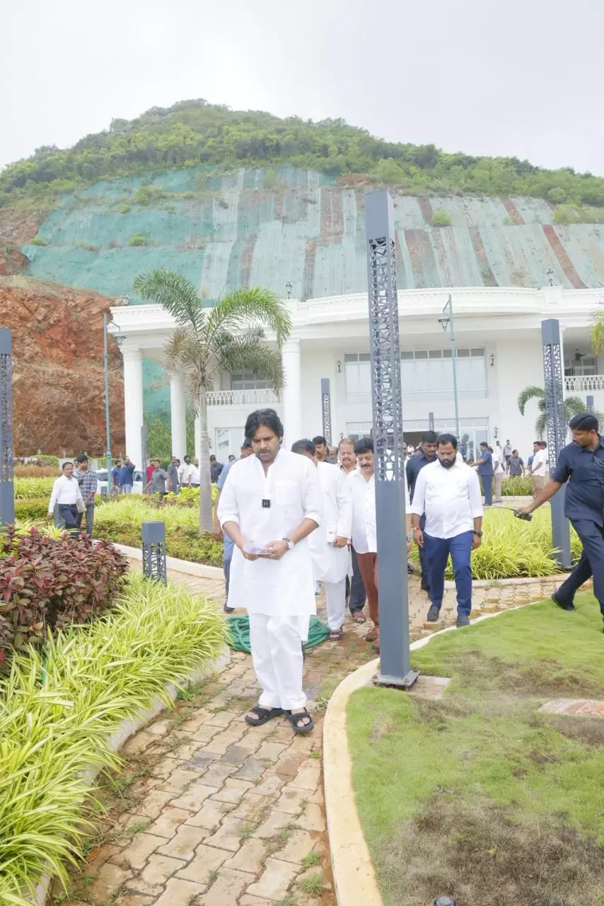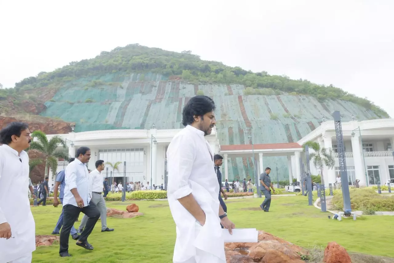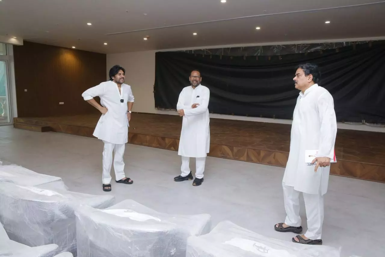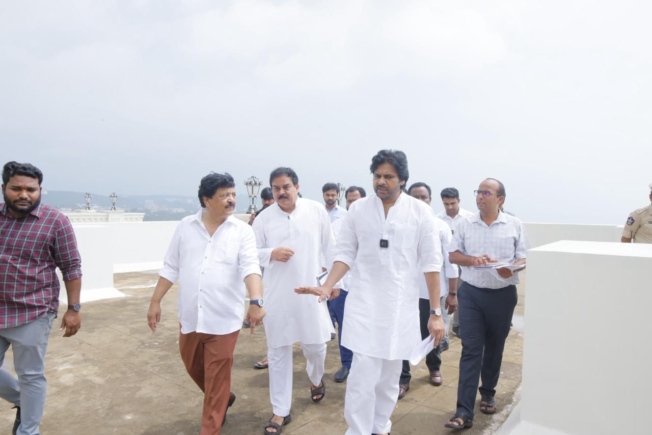 During the visit, Pawan Kalyan personally reviewed the construction sites and enquired about the progress and purpose of the buildings.