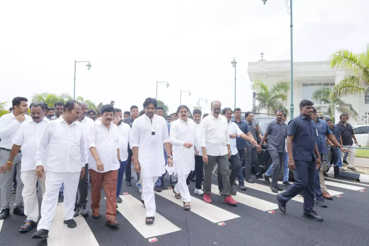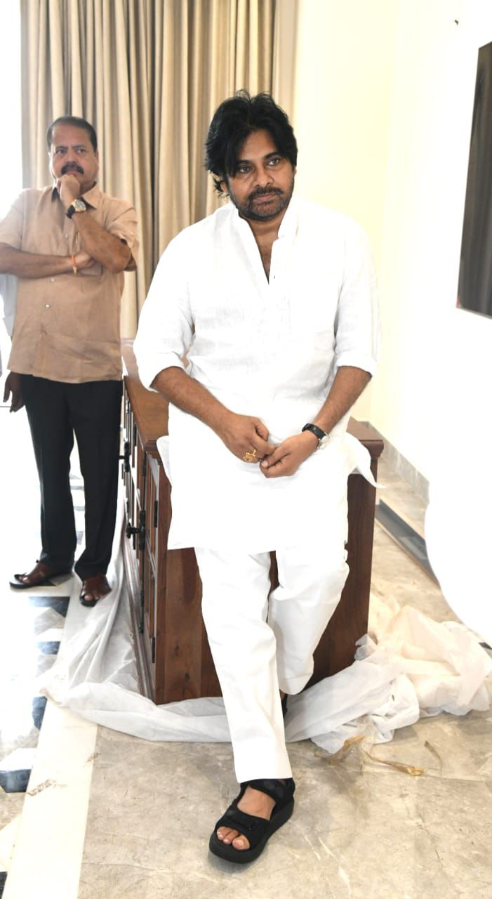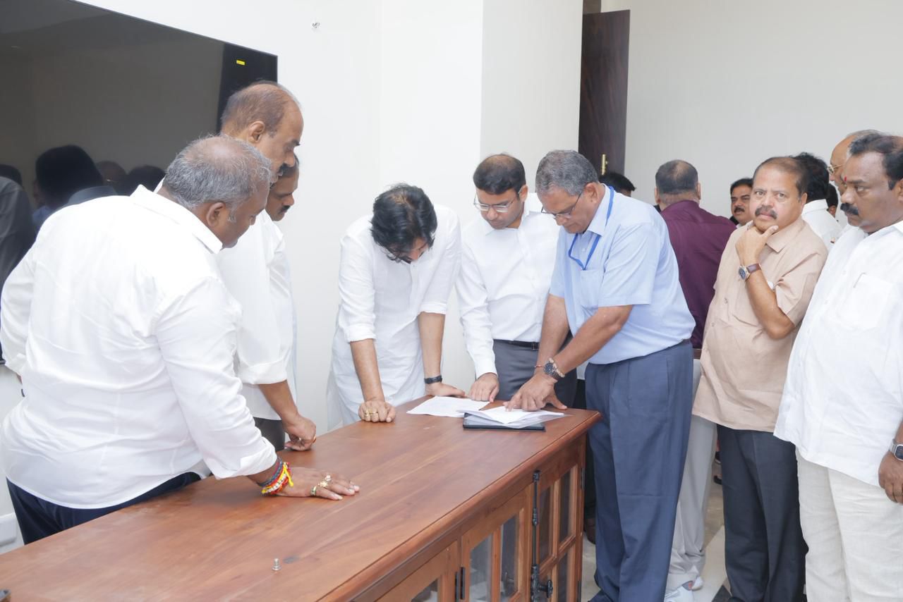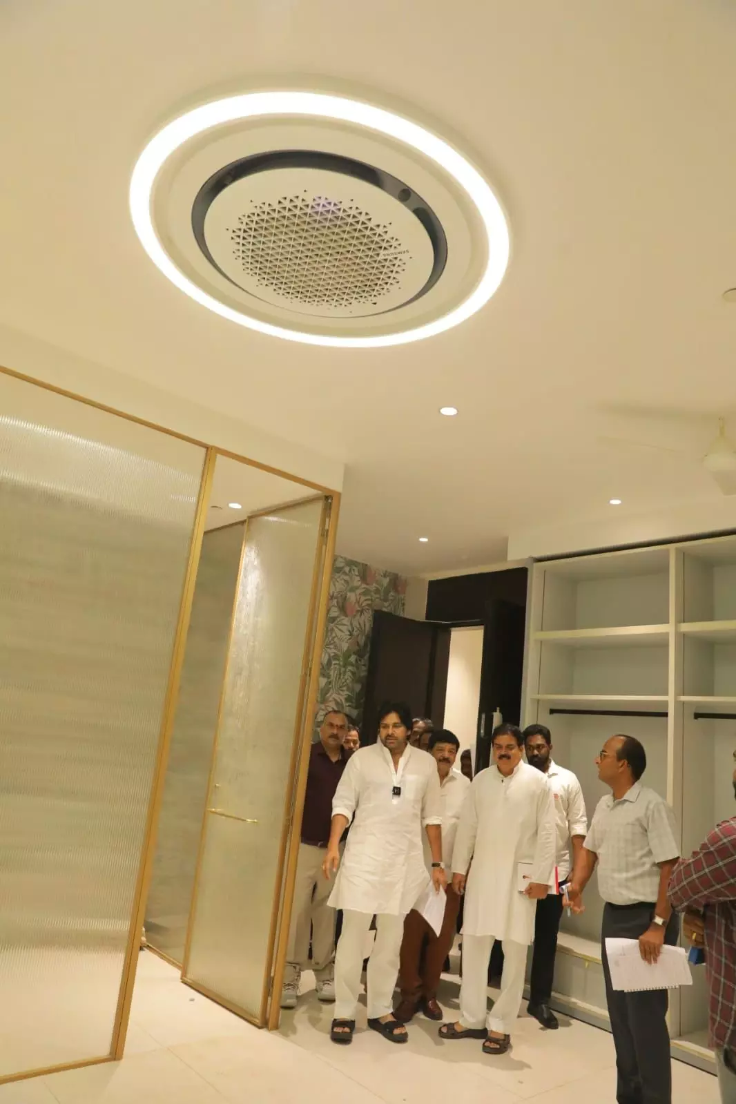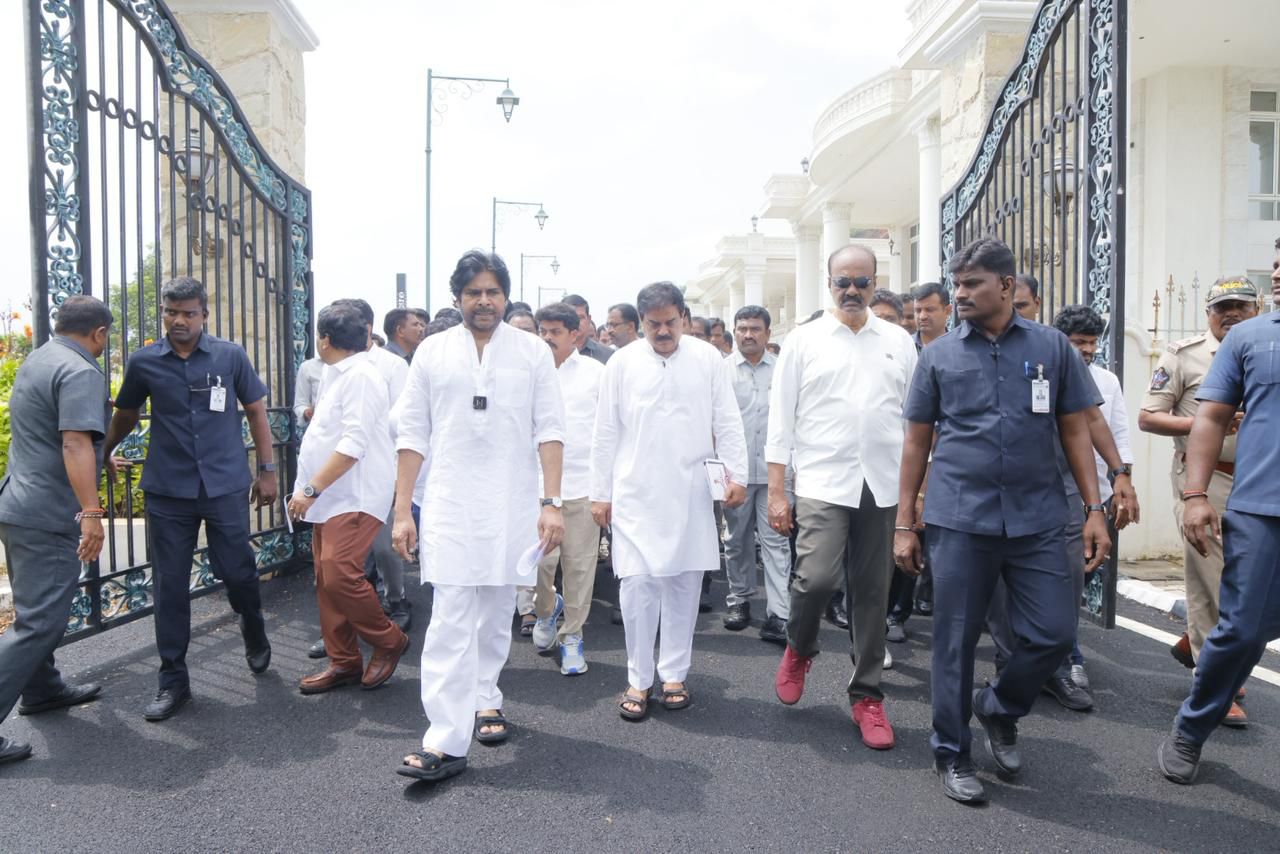 During the visit, Pawan Kalyan personally reviewed the construction sites and enquired about the progress and purpose of the buildings.