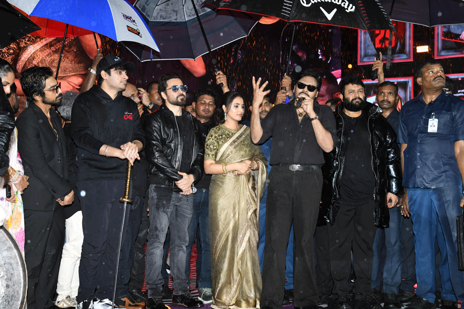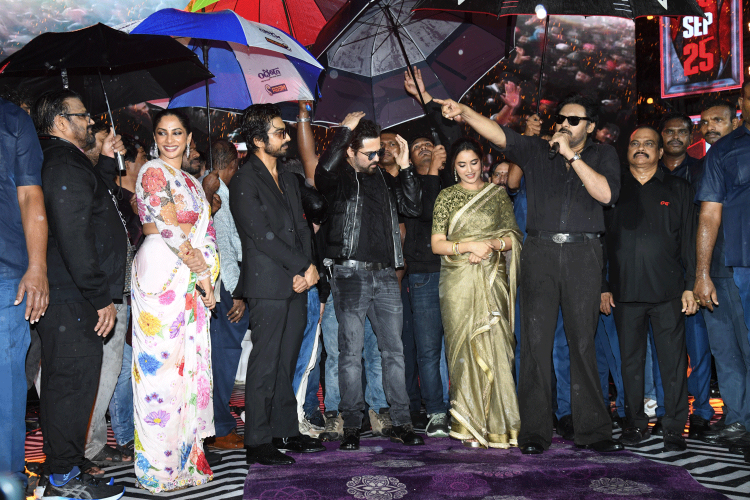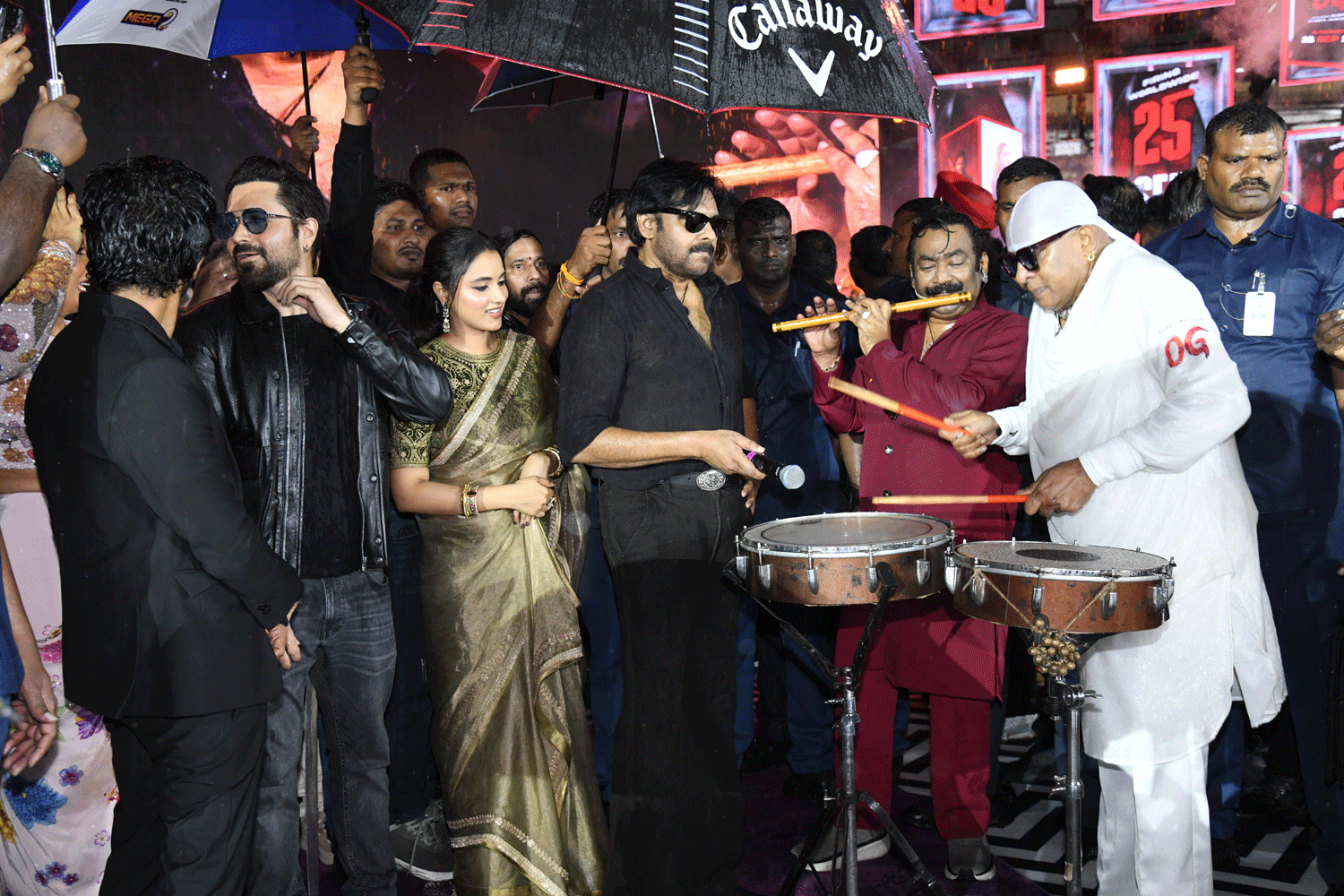 On Sunday evening, a grand pre-release event was held at LB Stadium, Hyderabad, drawing an electrifying crowd of fans. The evening saw the presence of the entire cast, crew, and several stalwarts of the film industry. Thaman and his team elevated the atmosphere with a spectacular live performance. The biggest highlight, however, was Pawan Kalyan himself taking the stage to sing “Washi Yo Washi” — a track he recorded for the movie. Adding to the thrill, the OG trailer was unveiled exclusively at the event, sending fans into a frenzy.