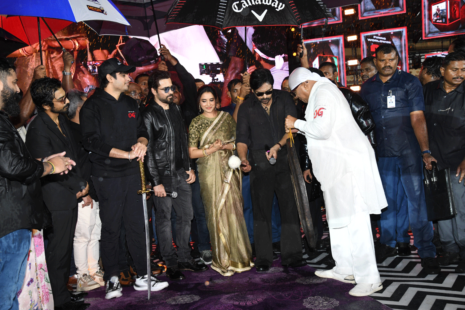 Actors Shriya Reddy, Emraan Hashmi, Arjun Das, and senior producers Allu Aravind, Dil Raju, Y. Ravi Shankar, Kona Venkat, and many others graced the occasion, wishing OG a record-breaking success.