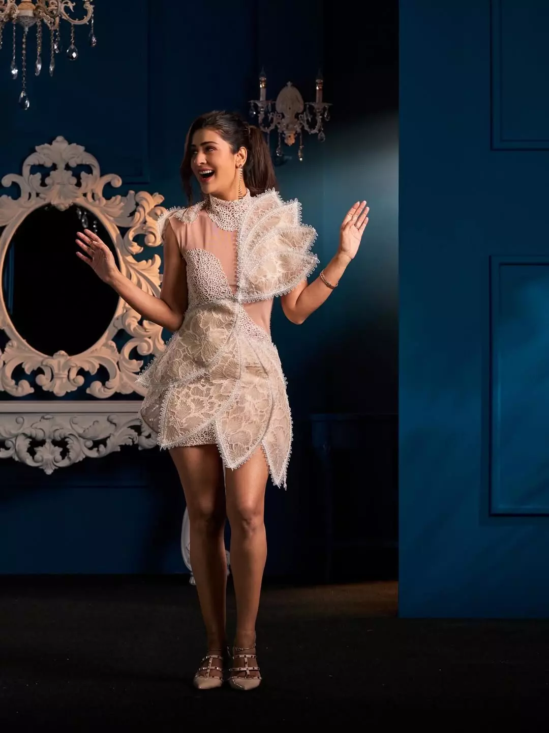 She looked radiant in a chic lace dress. Her smile added charm to the frame. The photo carried a stylish yet soft mood.