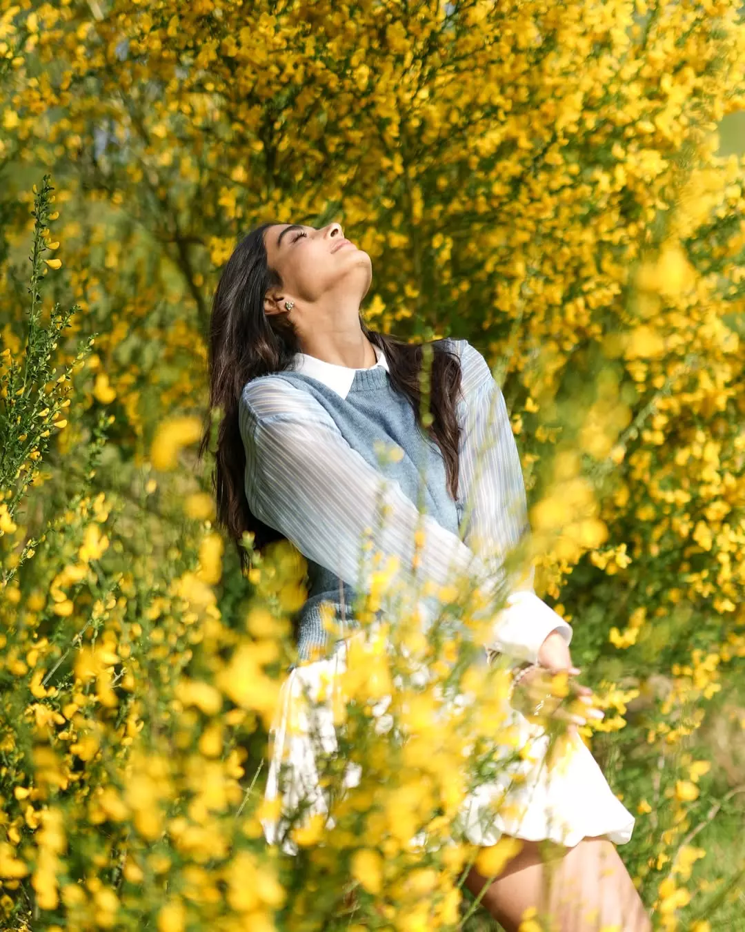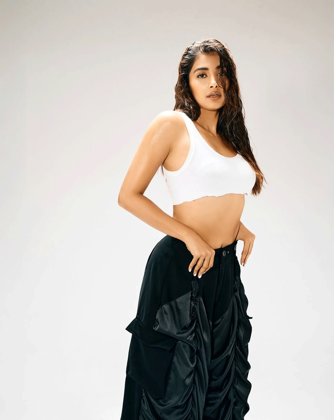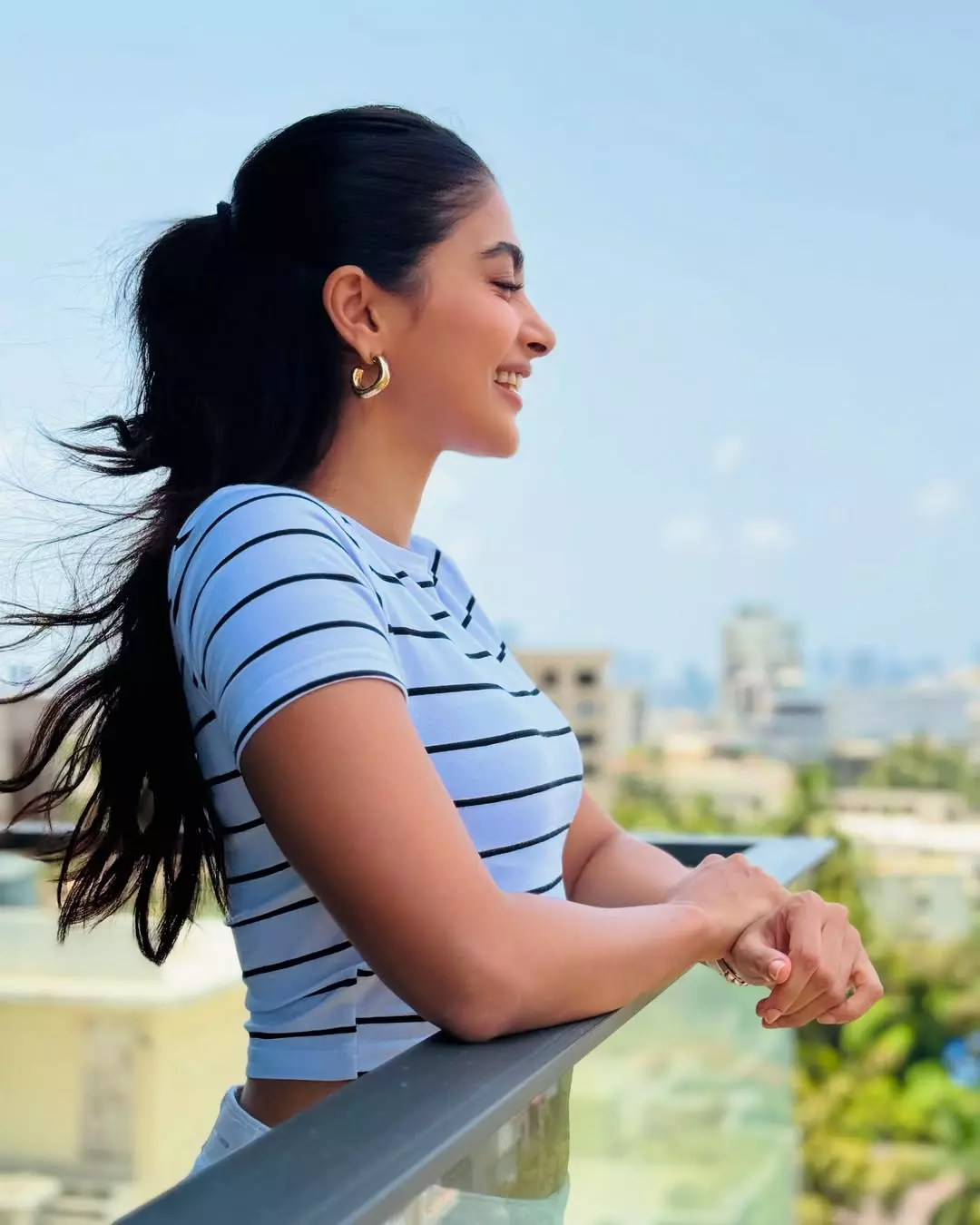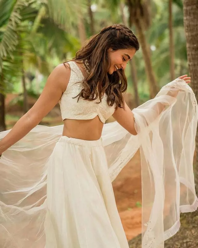 Pooja Hegde keeps her fashion easy and natural. She likes clothes that match her mood and surroundings. In many of her Instagram pictures, she is seen wearing casual looks. She wore a plain white top with a headband while relaxing indoors. It looked calm and peaceful.