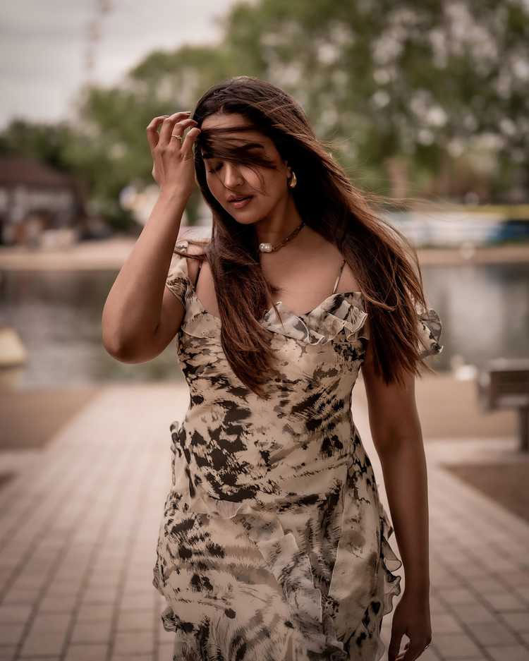 By: Tupaki Desk | 12 July 2025 3:00 AM ISTPoojitha Ponnada in her recent social media picture captured the essence of the "golden hour magic." In the photo, she is seen wearing a floral dress and soft sunlight during the golden hour added glow to her already glowing beauty. The image was captured by photographer Ganga Kiran whose work brings out the best in the actress, making this moment truly adorable.