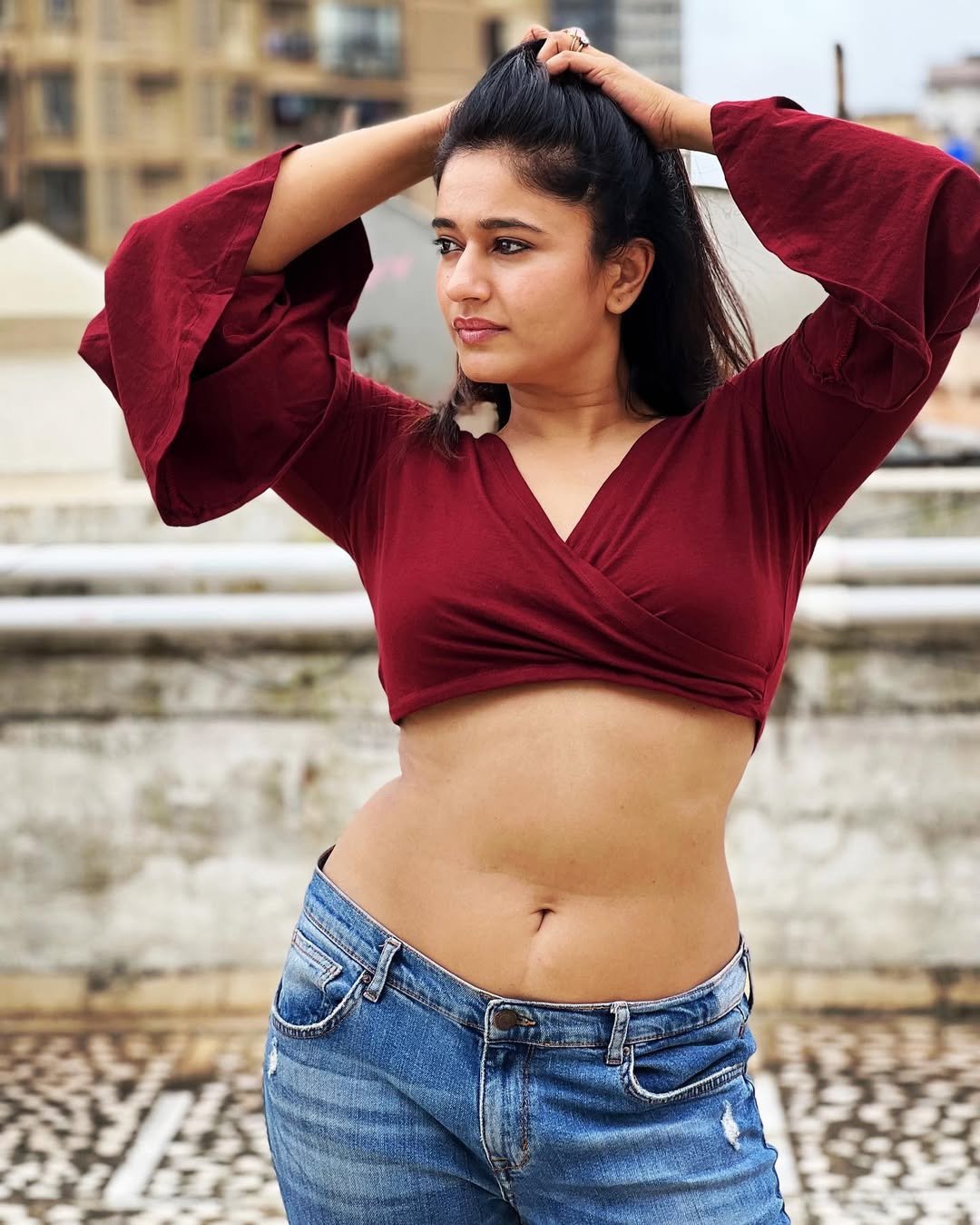 Poonam Bajwa, the versatile South Indian actress born on April 5, 1989 (some sources note 1985), in Mumbai to a Punjabi family, exudes effortless confidence and beach-ready glamour in this sunlit snapshot.