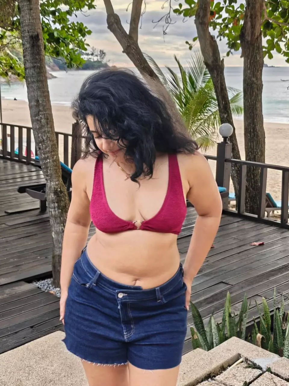 Poonam Bajwa Stuns in Black Swimsuit and Denim Shorts in a Beachside Glam Look