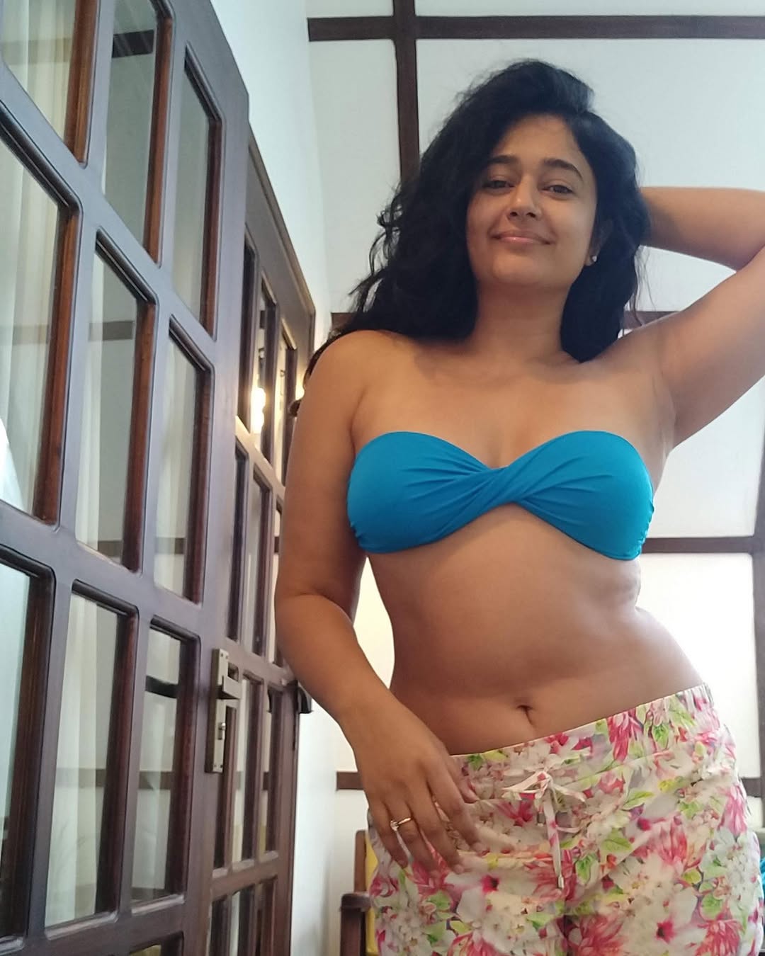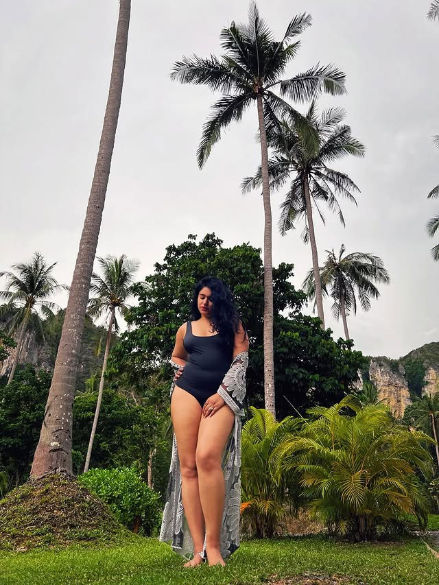 Actress Poonam Bajwa shared a bold and picture on her Instagram recently. In the photo, she is seen posing in a black swimsuit with a stylish wrap standing among green trees and palm trees. The background gives complete beach vacation vibes. Her caption is sweet and romantic. She wrote, “I like it when you smile😊 But I love it when I am the reason💗.” The photo was clicked by @suneel1reddy. Fans are loving Poonam’s confidence and natural look.