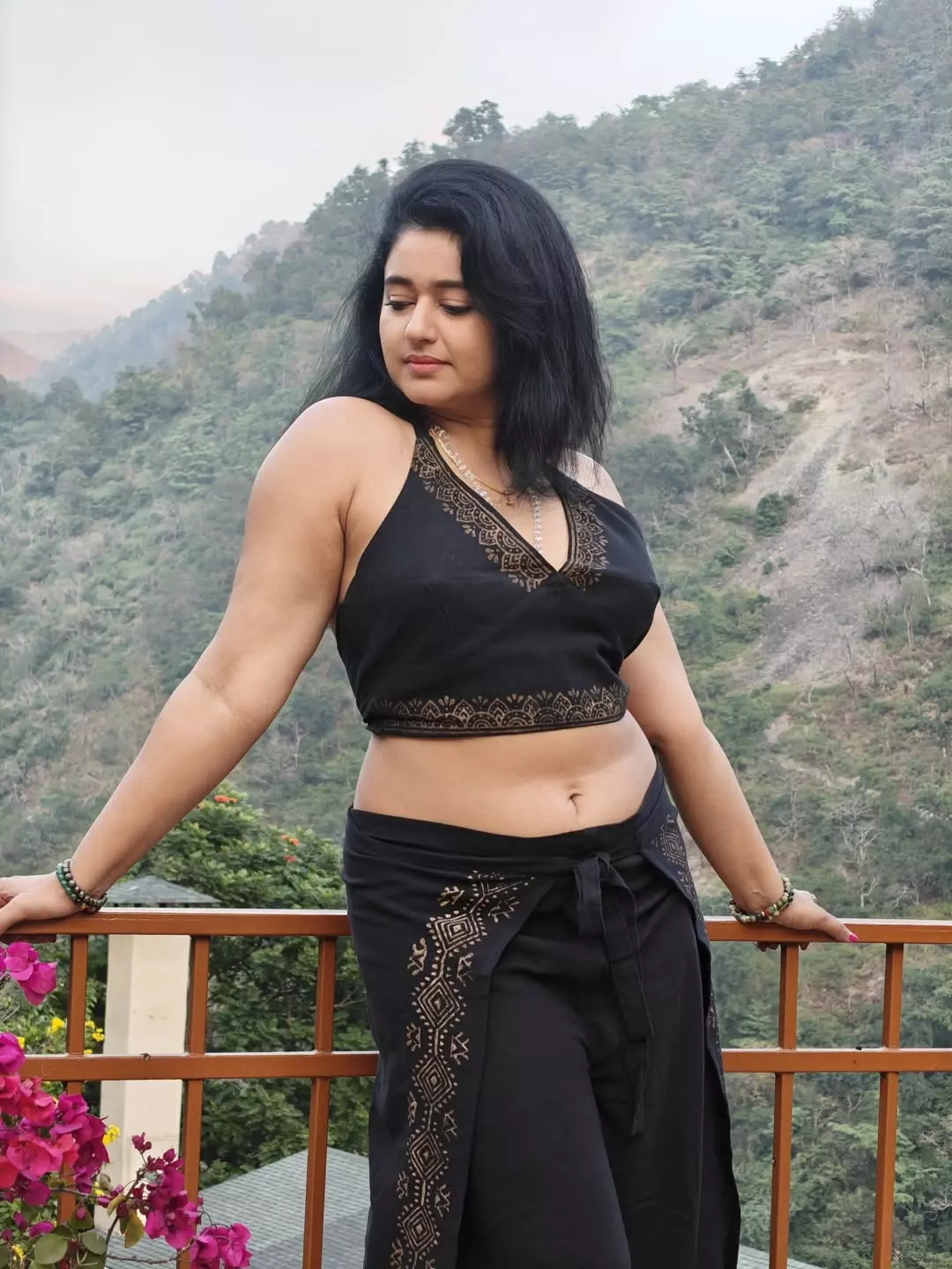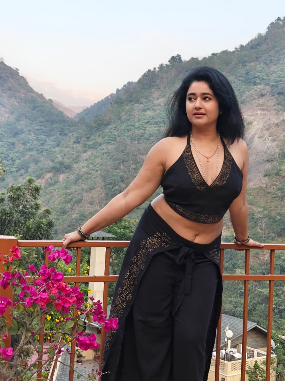 Actress Poonam Bajwa continues to captivate audiences with her timeless charm and graceful presence, and her latest photo captures her in a serene, picturesque hill-station backdrop. Dressed in a stylish black outfit with elegant ethnic detailing, Poonam exudes confidence and natural beauty. Her radiant smile and relaxed posture reflect her effortless glamour, reminding fans why she remains one of the most admired faces in South Indian cinema.