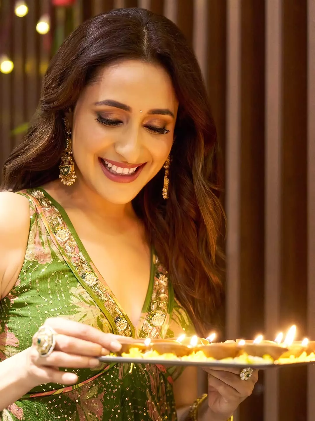 By: Priya Chowdhary Nuthalapti | 22 Oct 2025 7:40 PM ISTActress Pragya Jaiswal recently shared a beautiful glimpse of her Diwali celebration on Instagram. The actress looked cheerful and radiant as she posted a lovely photo of herself dressed in a stunning green floral dress. In the picture, Pragya is seen smiling brightly, surrounded by warm lights and festive vibes.