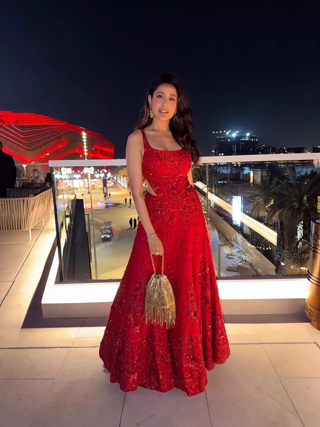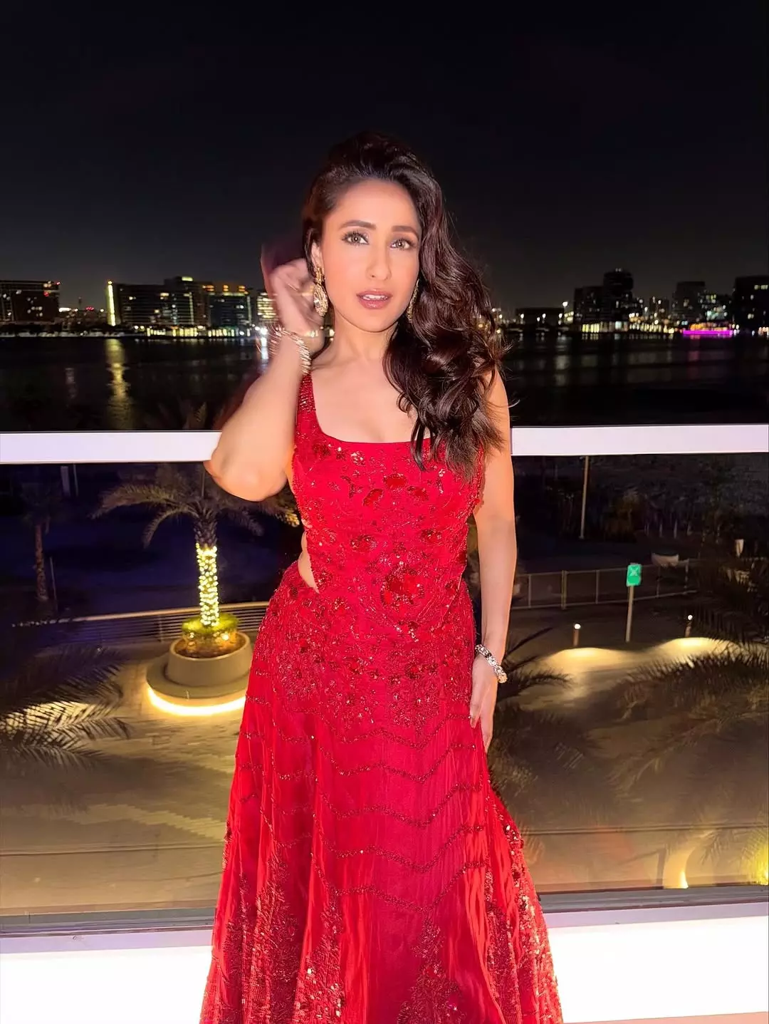 1 / 43pragya jaiswal stuns in red gown against dubai skyline