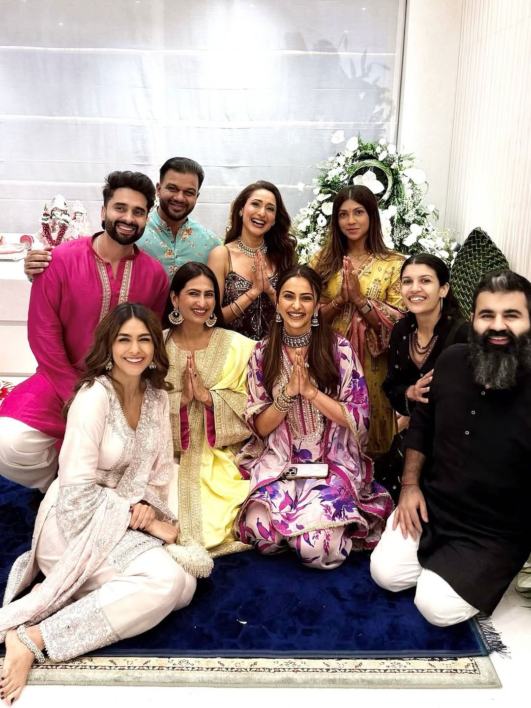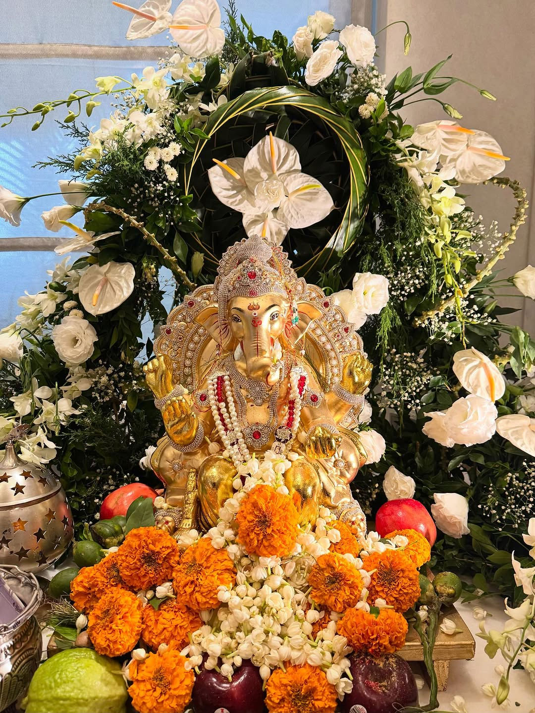 Complementing her attire with minimal jewelry and a radiant smile, Pragya posed gracefully with folded hands in front of a beautifully decorated Ganesh idol.