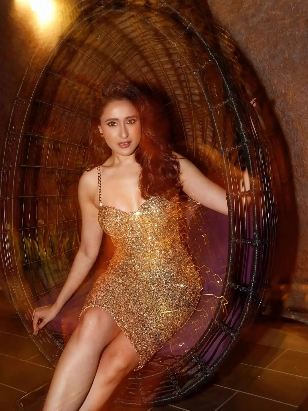 By: Tupaki Desk | 17 April 2026 11:41 PM ISTIn this dazzling photograph, Pragya Jaiswal glows as the ultimate Golden girl . She strikes a confident pose with one hand running through her voluminous wavy hair, wearing a figure-hugging gold sequin slip dress that sparkles under warm lighting, creating a stunning lens flare effect. Her sultry expression and elegant styling make the image radiate glamour and sophistication.