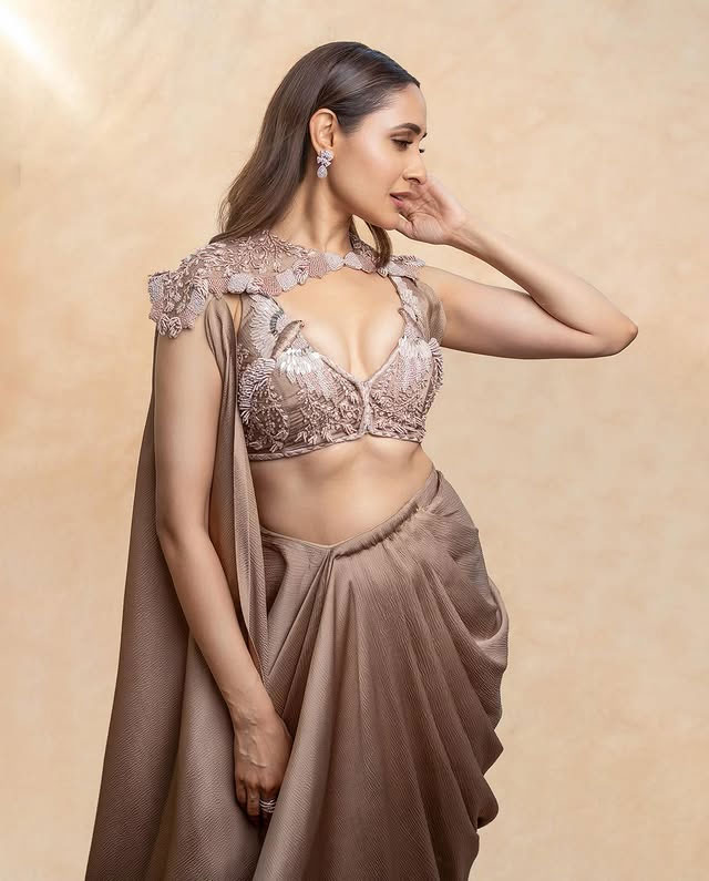 Set against an urban rooftop backdrop, her look perfectly blends contemporary fashion with timeless appeal. Whether for a casual outing or a special event, Pragya Jaiswal’s outfit offers stylish inspiration for anyone seeking to merge bold fashion choices with classic elegance.