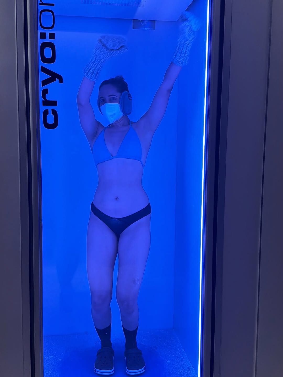In one of the photos, Pragya is seen stepping out of clear blue water using a small staircase. She is smiling naturally.