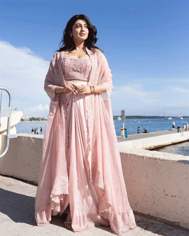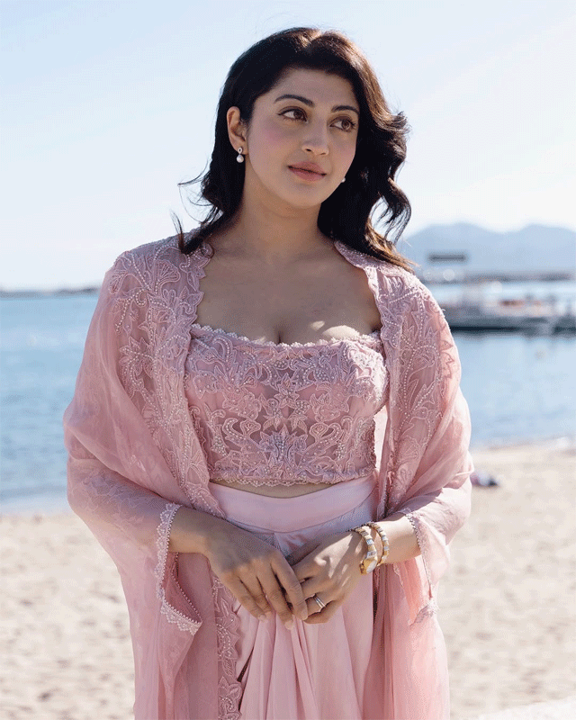 In a graceful appearance at the Indian Pavilion at Cannes 2025, actress Pranita Subhash radiated elegance in a pastel pink embroidered ensemble. With the serene beach and iconic Cannes coastline as her backdrop, she brought Indian tradition to the global stage with poise and charm. Her soft makeup, delicate jewelry, and confident aura perfectly captured the essence of timeless beauty and cultural pride.