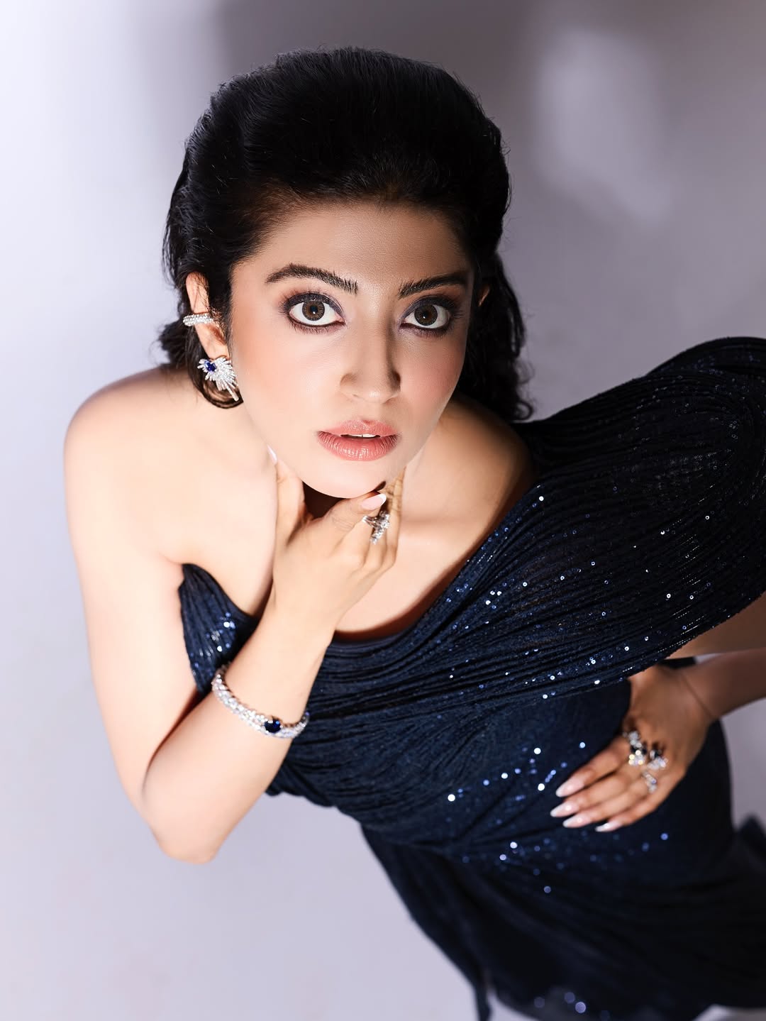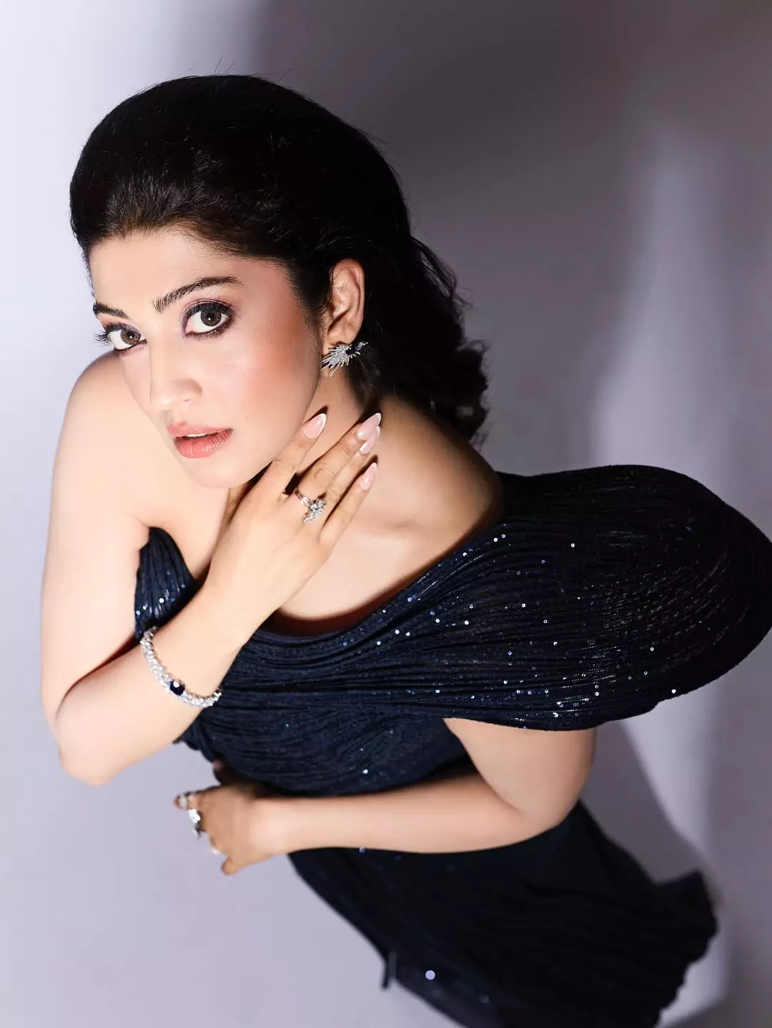 By: Priya Chowdhary Nuthalapti | 9 Aug 2025 11:20 AM ISTActress Pranitha Subhash captivates with her stunning presence in a one-shoulder black gown adorned with shimmering sequin detailing. The dress features intricate textured patterns that elegantly contour her silhouette, giving a regal and red-carpet-ready vibe. The structured shoulder design adds a bold, modern twist, while her choice of statement earrings and delicate bracelets perfectly enhance the look. With her sleek, side-swept hair and soft glam makeup highlighting her expressive eyes, Pranitha radiates timeless sophistication.