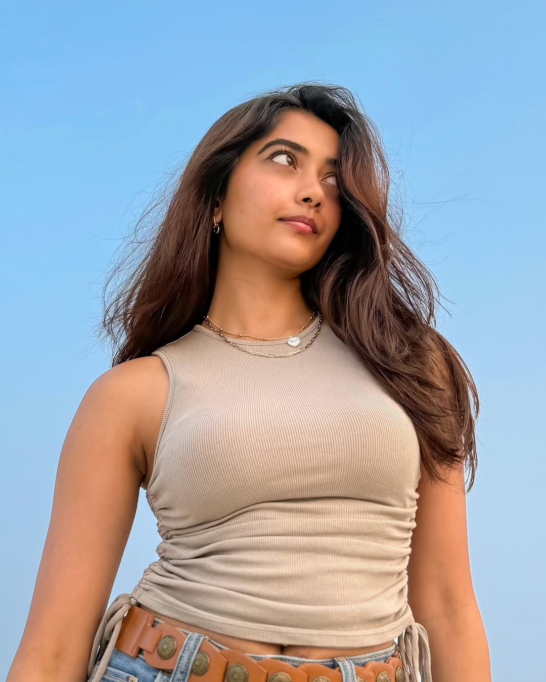 Preethi Pagadala is quickly emerging as one of the most charming and promising young talents in the South Indian film industry. Known for her natural beauty, expressive eyes, and confident screen presence, she has captured attention both on and off the screen. Her stylish appearances in photo shoots, like this one set against a serene green backdrop, reflect her effortless elegance and modern appeal.