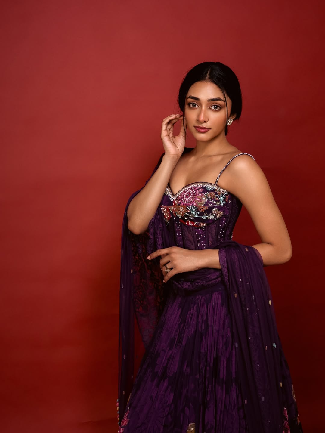 Her flawless look is further elevated by expert makeup from @blushbynamitha, giving her a glowing, radiant finish, while hair styling by @pr adds the perfect dose of volume and movement. Completing the creative effort, assistant stylist @shivani_mohanakrishnan ensures every detail aligns seamlessly.