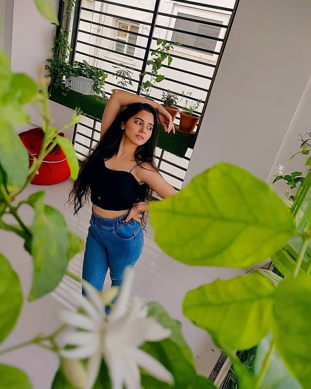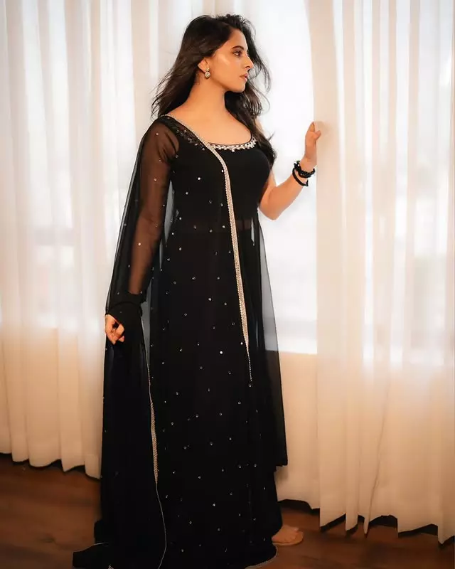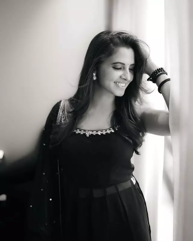Preethi Asrani shared a soft and graceful photo on Instagram that radiated calm elegance. She is seen gently near a window dressed in a flowing black suit with sheer sleeves and subtle embellishments.
