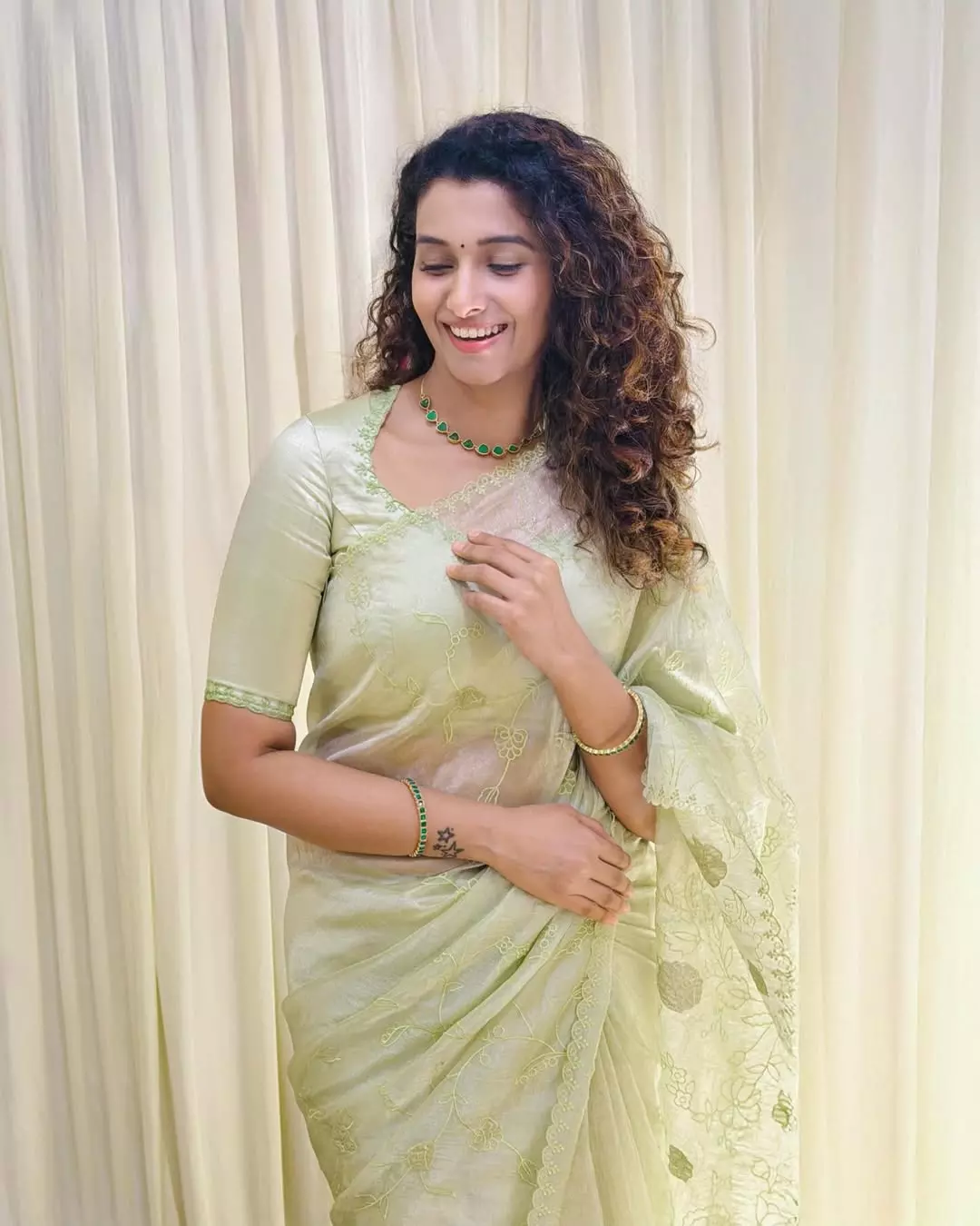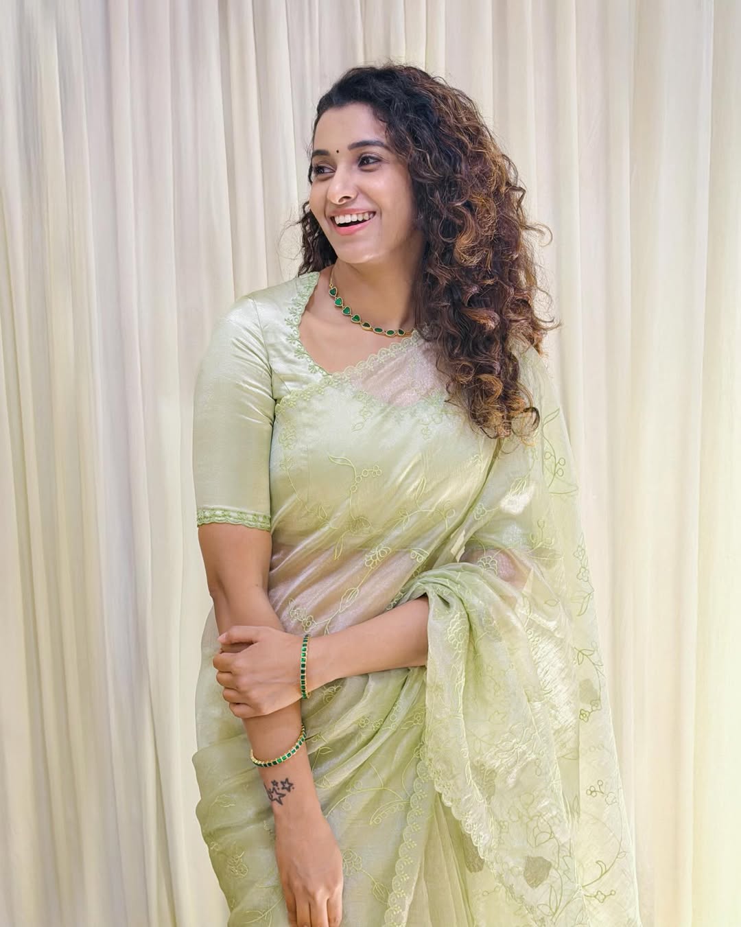 By: Tupaki Desk | 3 Jan 2026 12:23 PM ISTTamil cinema's charming actress Priya Bhavani Shankar rings in 2026 with infectious joy in this elegant photoshoot. Draped in a soft pastel green saree with delicate embroidery, complemented by emerald jewellery and a radiant smile, she captures pure celebration. As she shared: Birthday candles out, new year lights on. Thank you all for the love and wishes… carrying them forward. Wishing you all a year that’s kind, fun, and full of good surprises @rimliboutique loved the jewellery @razak_creations thanks for the last minute support like always.