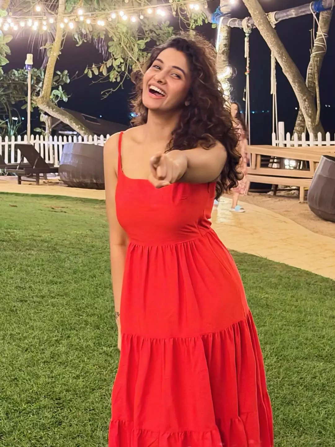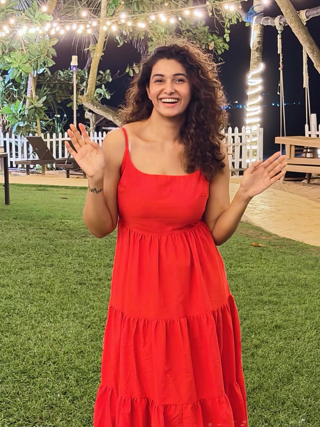 By: Tupaki Desk | 25 Dec 2025 11:28 AM ISTTamil actress Priya Bhavani Shankar captures pure holiday joy in this festive snapshot. Dressed in a vibrant red tiered maxi dress with thin straps, she beams widely with arms raised in excitement against a beautifully lit outdoor setting – string lights wrapped around palm trees, wooden benches, and a cozy evening ambiance evoking tropical celebrations.