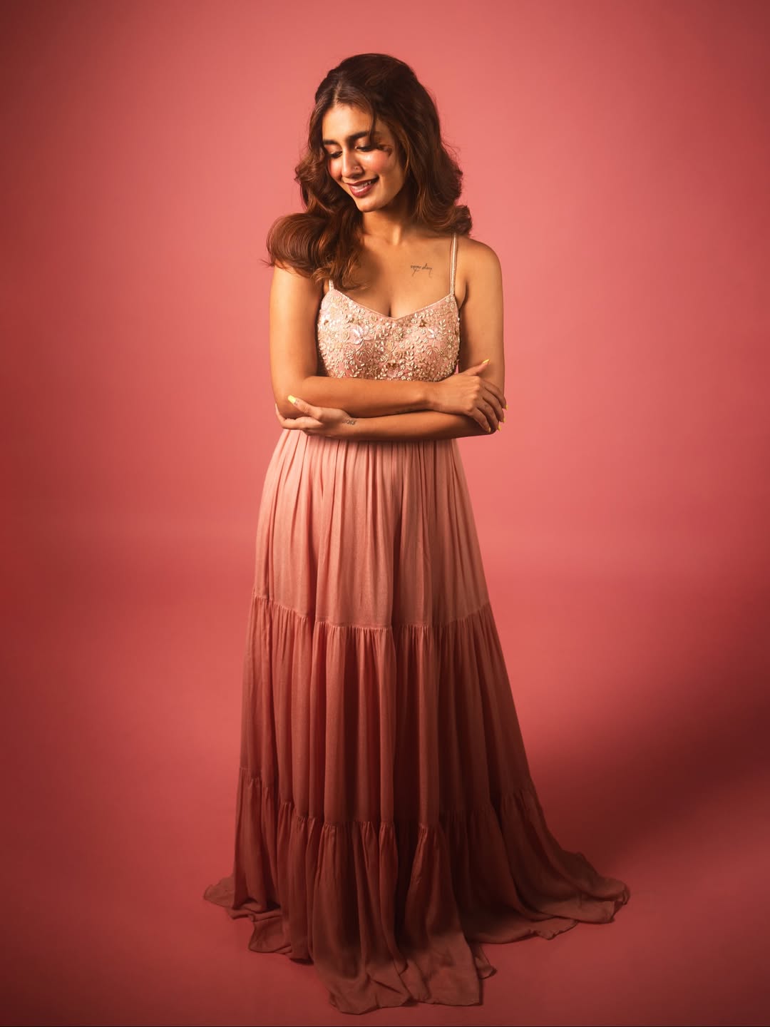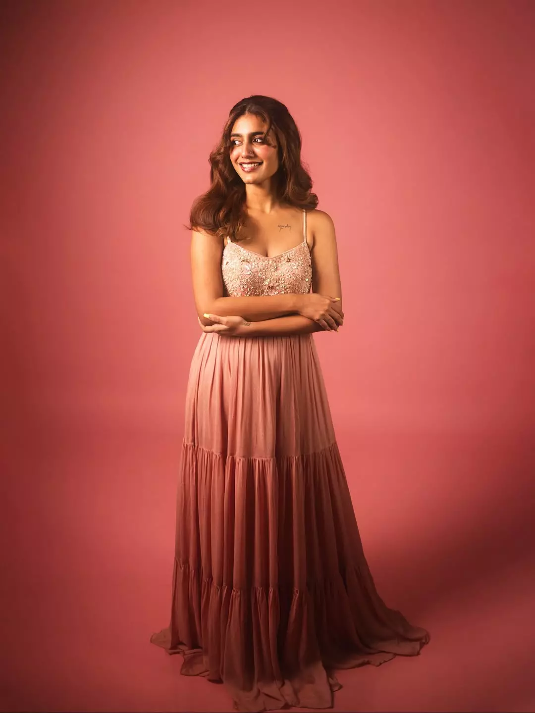 The Check actress often shares her pictures from various photoshoots, vacations, and film sets on her profile. Recently, she shared a few stunning pictures of herself from a recent photoshoot. Wearing a sleeveless long gown with floral embroidery, Priya looks regal in these pictures. She stood gracefully, posing in the soft pink background, letting out her infectious smile and eternal charm. People are swooning over her beauty after witnessing these pictures. "Avan dha ennava🌷," Priya captioned the post. These pictures are now going viral on social media.