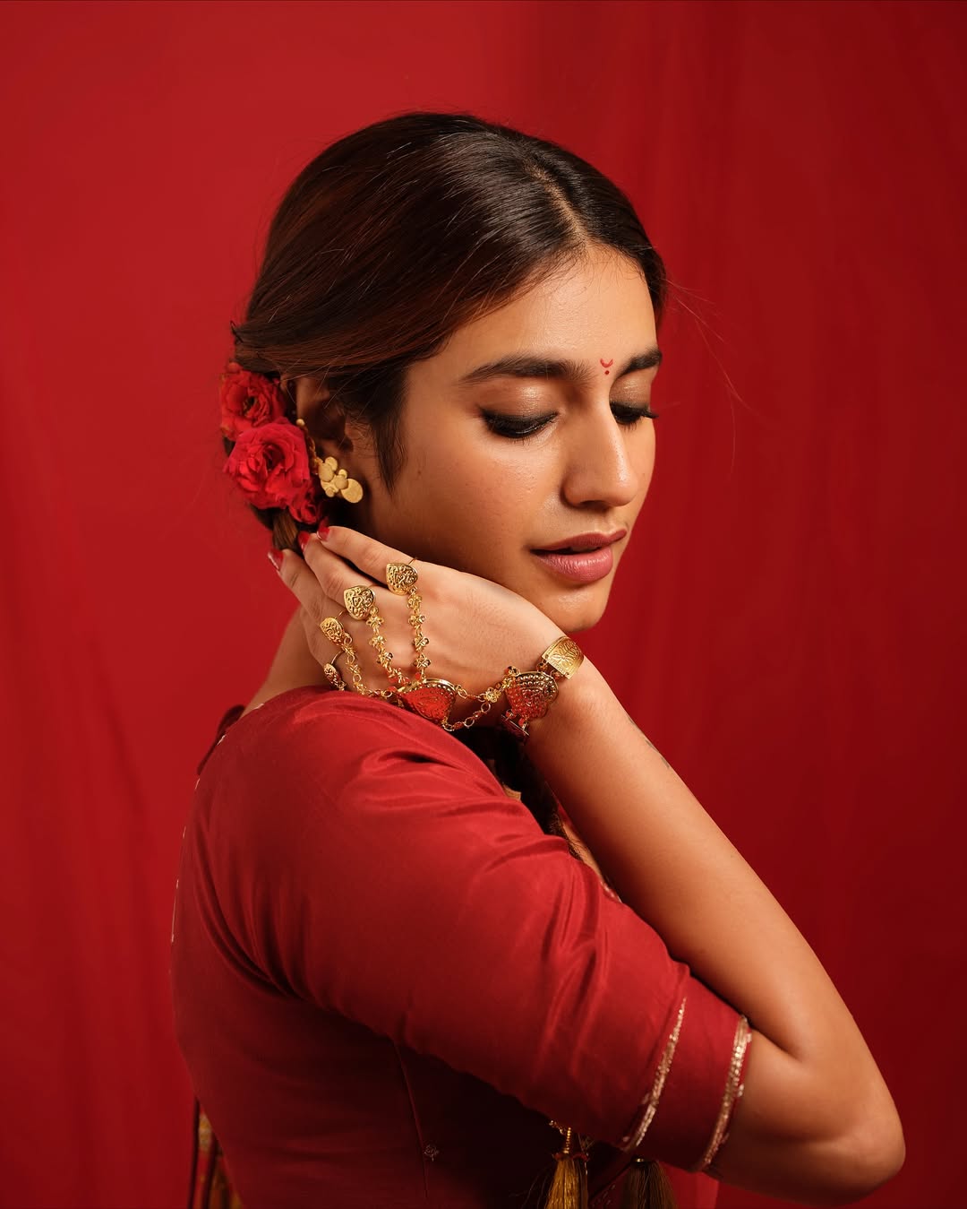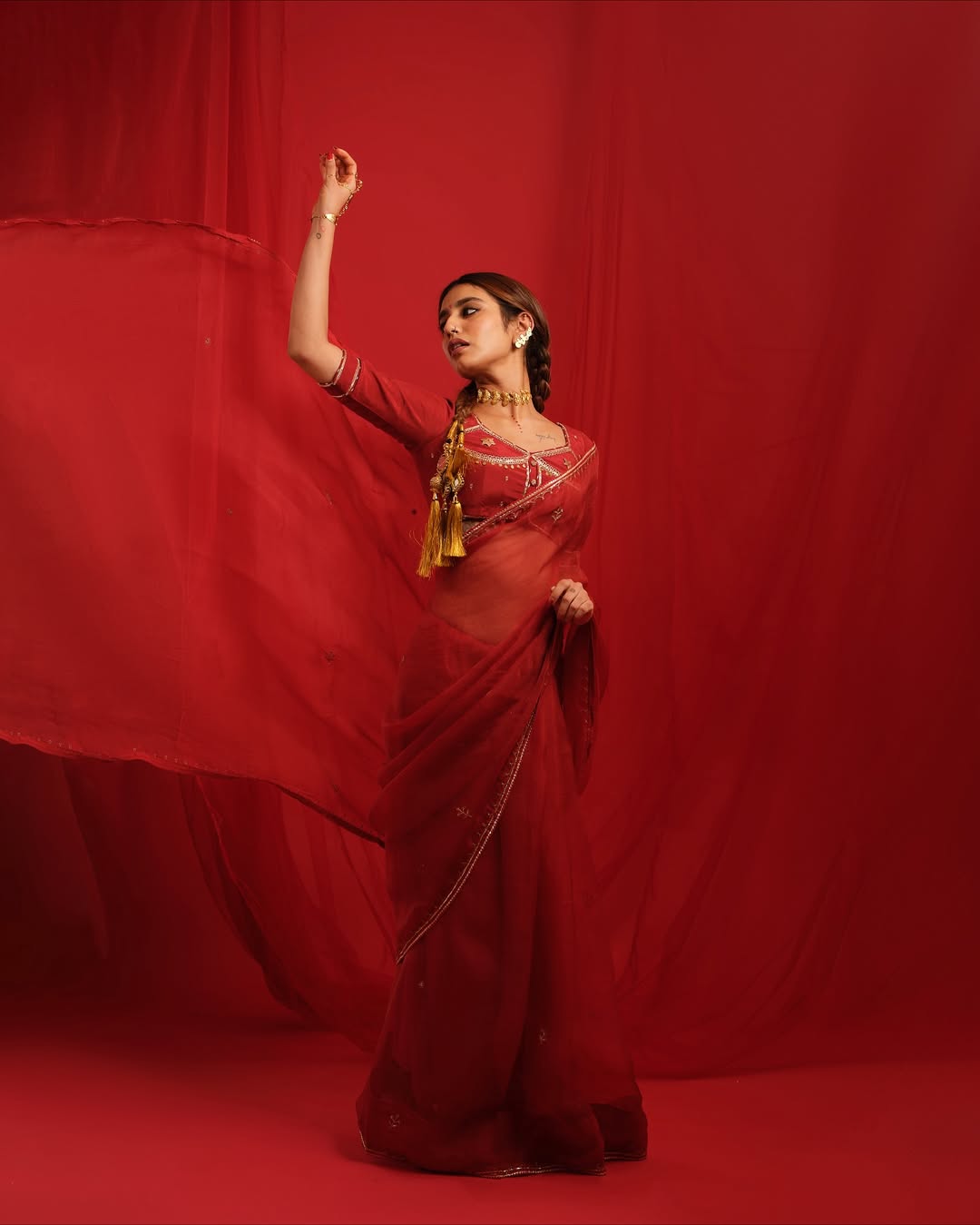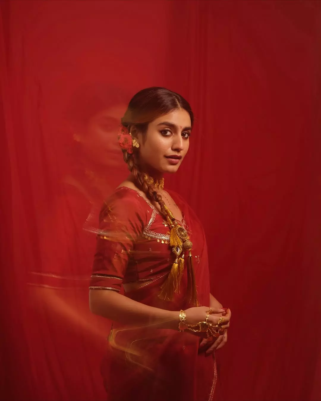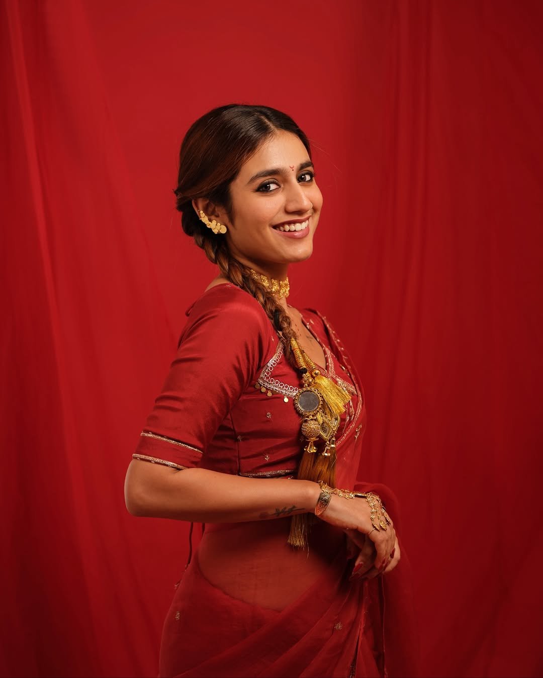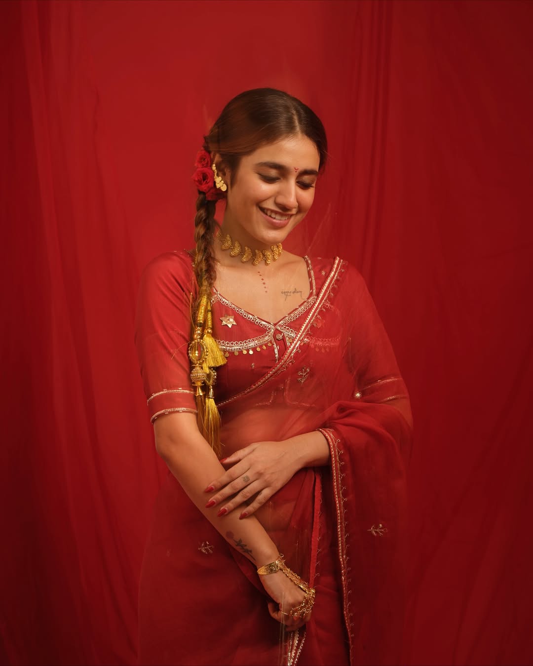 Priya P Varrier’s Stunning Red Saree Look This Diwali
