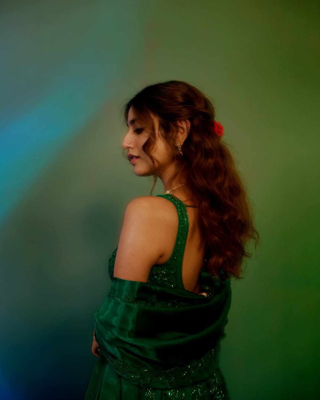 Priya Prakash Varrier Looks Like a Queen in Green Dress