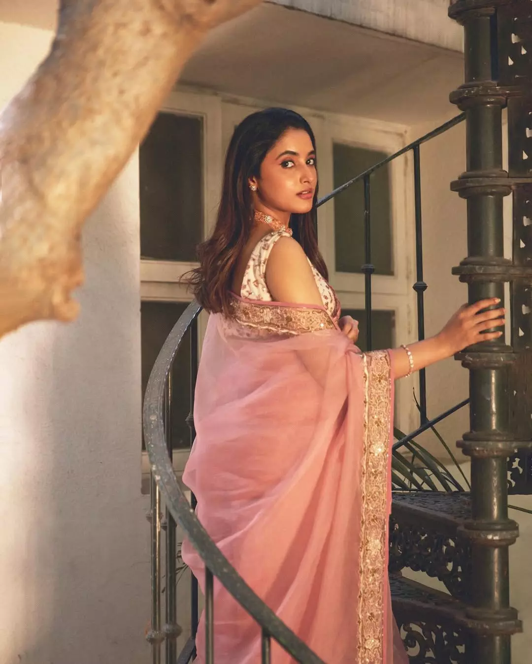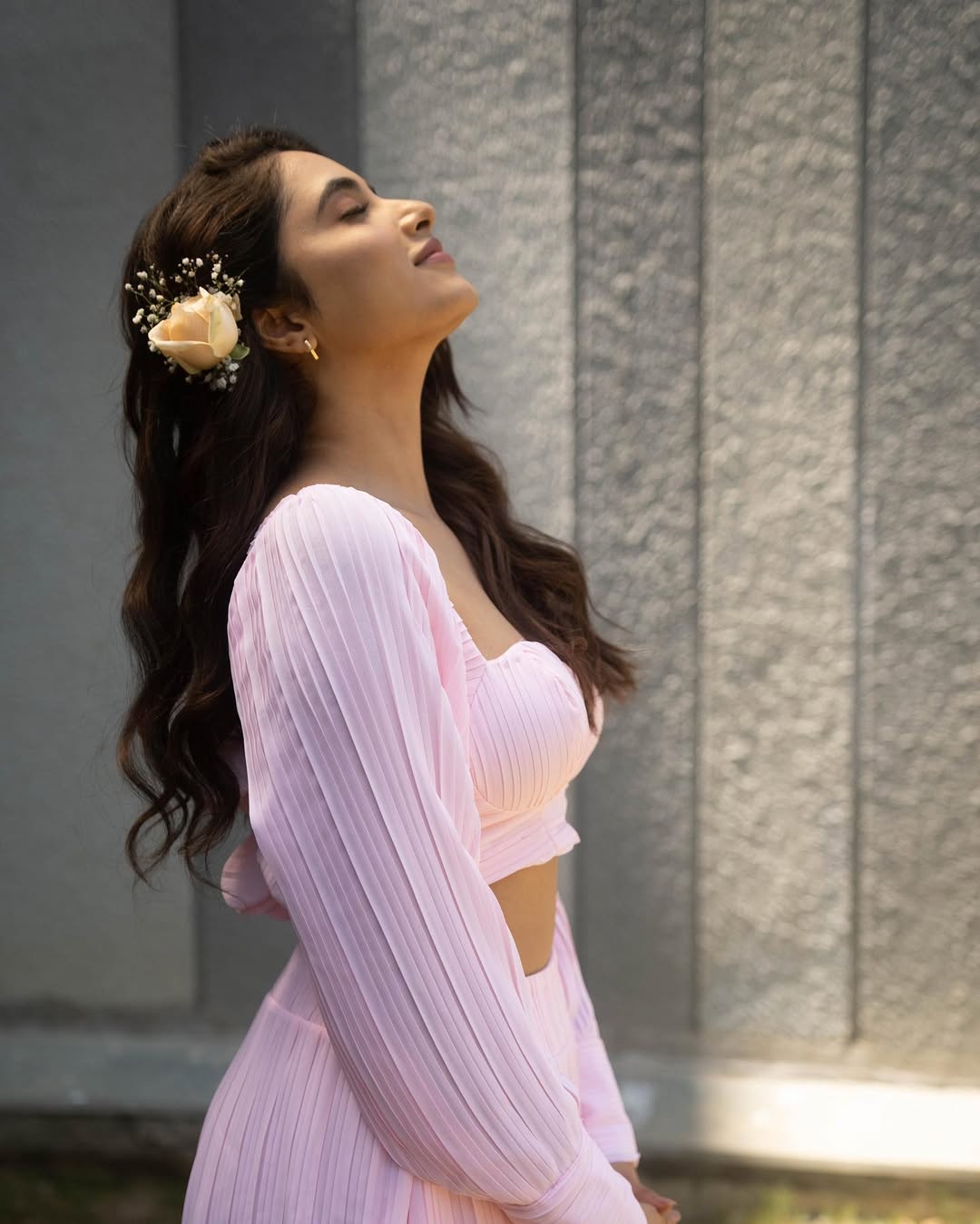 In her latest photodump, Priyanka Mohan radiates pure serenity in a soft pink pleated outfit, exuding elegance and feminine charm. With a delicate rose tucked in her hair and eyes closed to the sun, she captures a moment of calm a gentle contrast to the high-voltage energy she's bringing on-screen.