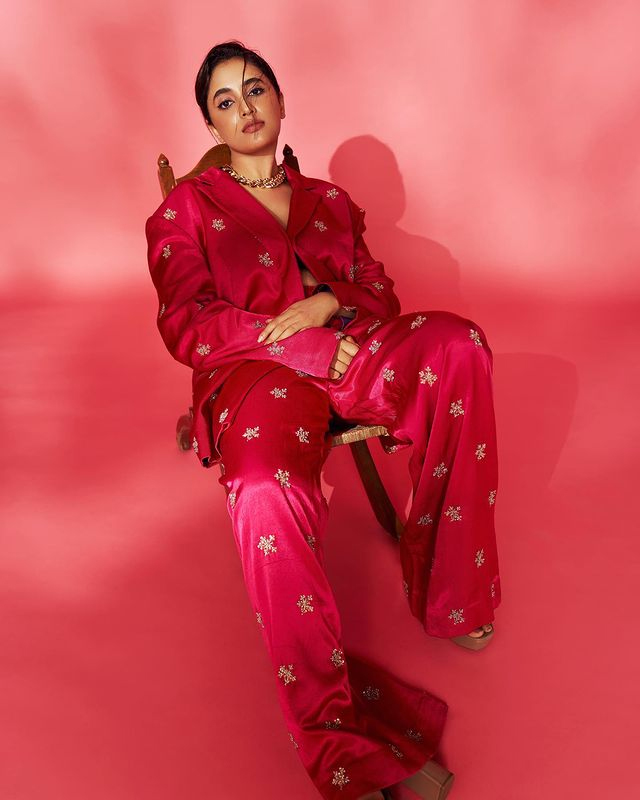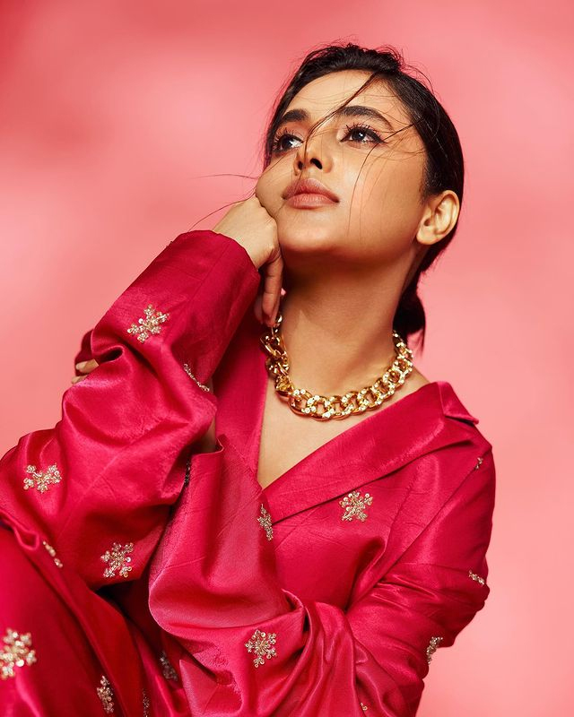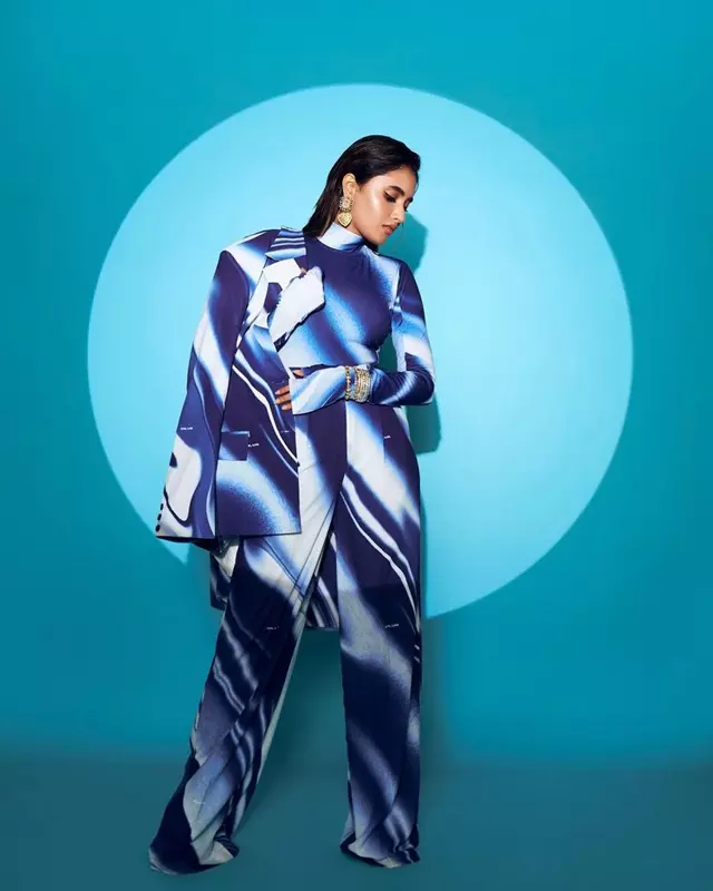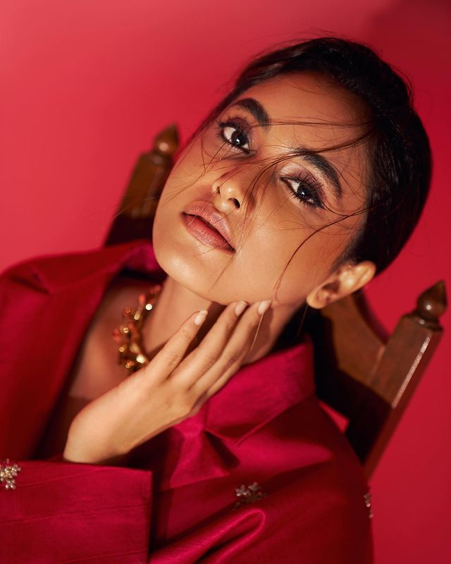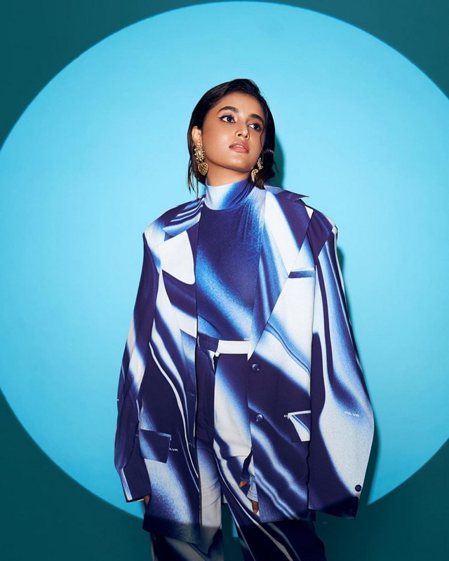 Her beauty look stays true to her subtle style—glowing skin, soft nude tones, and lightly defined eyes that let her natural radiance take center stage. With her hair cascading in relaxed waves, Priyanka brings an effortless allure to every shot, making the entire photoshoot feel fresh, serene, and impeccably chic.