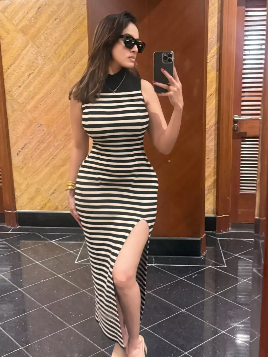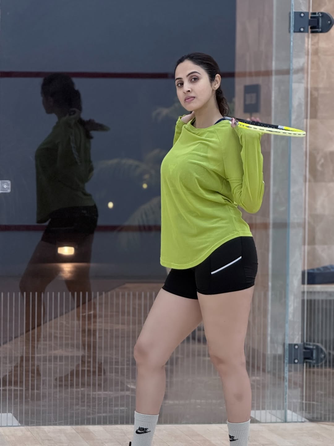 In this radiant photo, actress and fitness enthusiast Priyanka Kholgade serves serious motivation as she lounges in a trendy light blue crop top paired with black leggings. With a playful smile and confident gaze, she captioned the vibe perfectly: “Just checking fitness” — reminding fans that staying fit is a constant, stylish journey!
