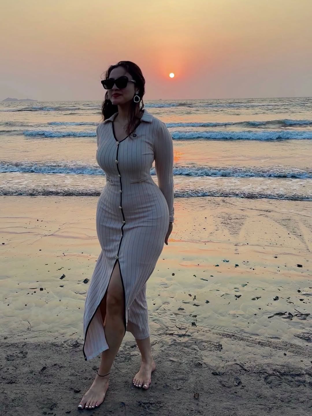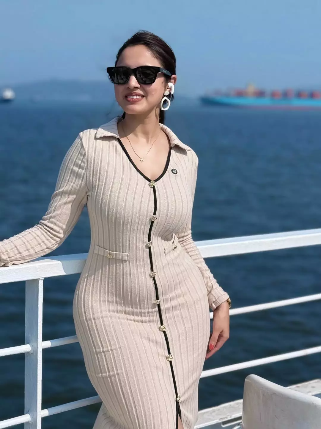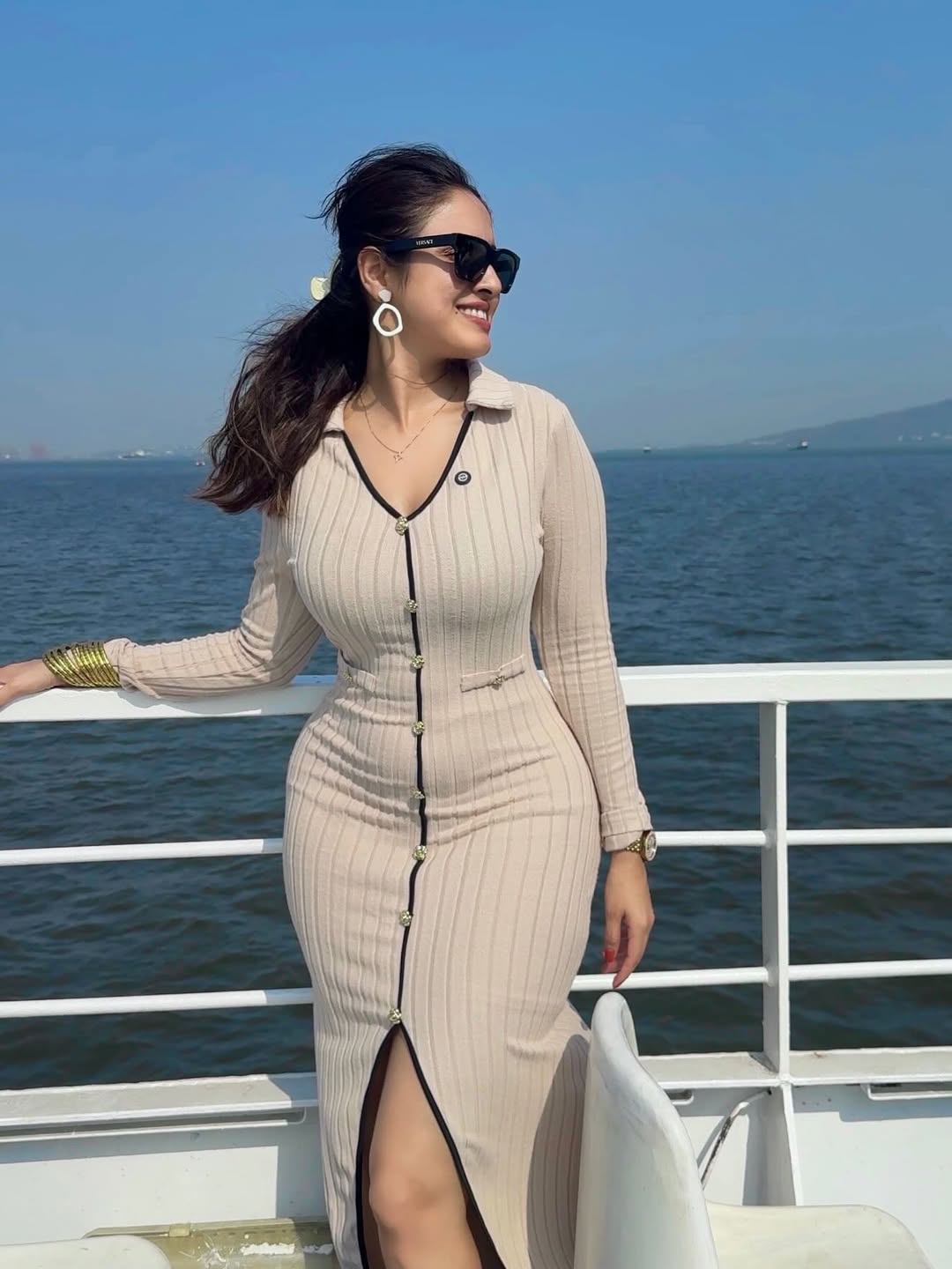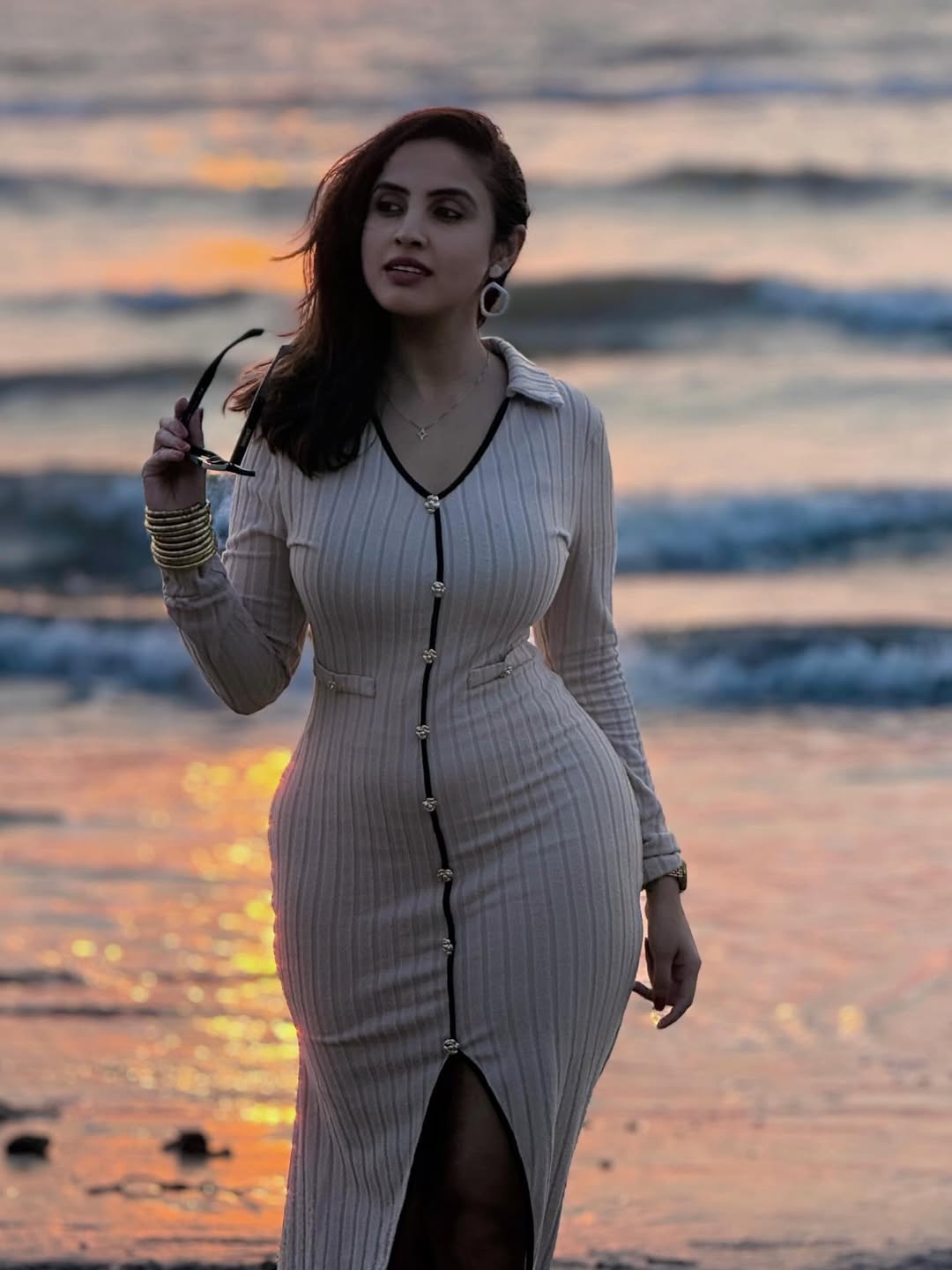 By: Tupaki Gallery Desk | 16 March 2026 3:57 PM ISTPriyanka Kholgade looks effortlessly chic in this beige ribbed bodycon dress, posing confidently by the sea with her signature sunglasses and bold earrings. The multi-talented actress, model, and influencer radiates boss energy against the scenic coastal backdrop.